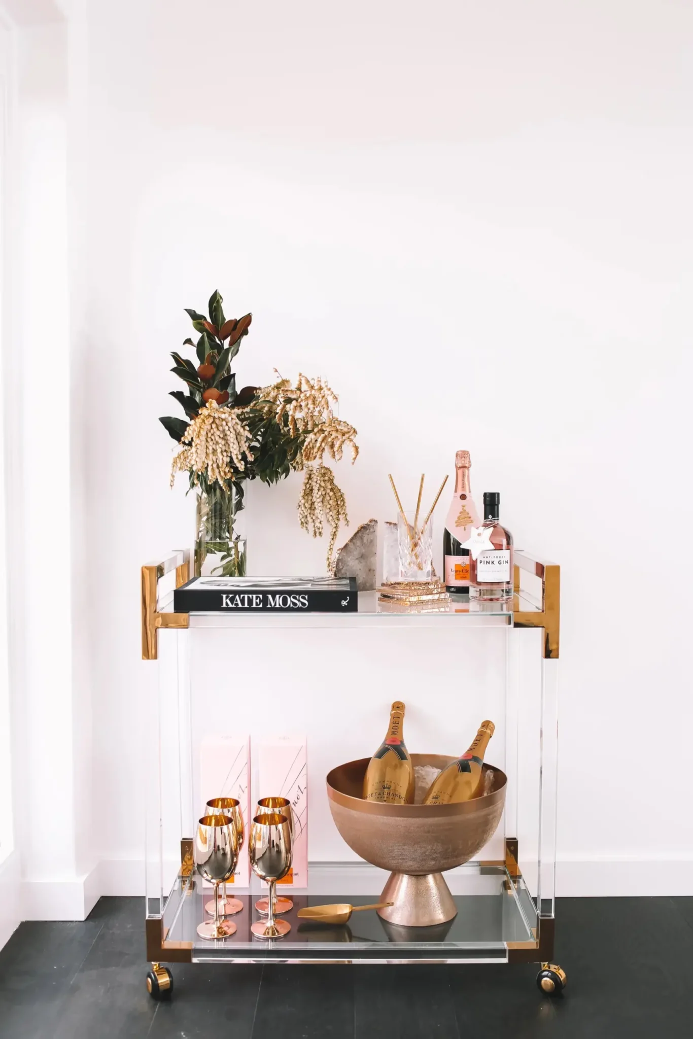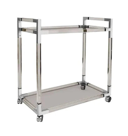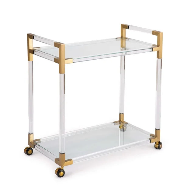 Available in clear acrylic with brushed brass or smoke acrylic with polished nickel framework also available.