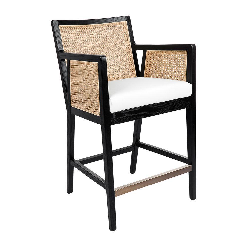 Kane Black Rattan Kitchen Stool – White Linen