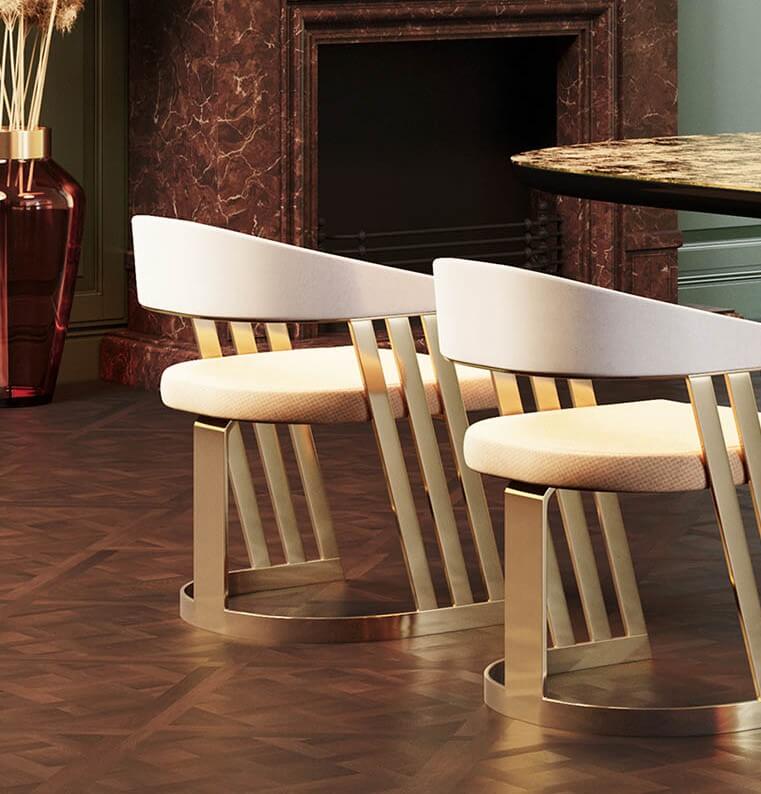 Karmen Dining Chair adds instant class and contemporary chic to the home. A truly stunning seat, the velvet palette works well alongside creamy marble tables.