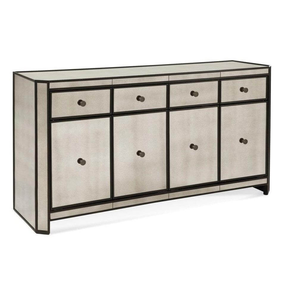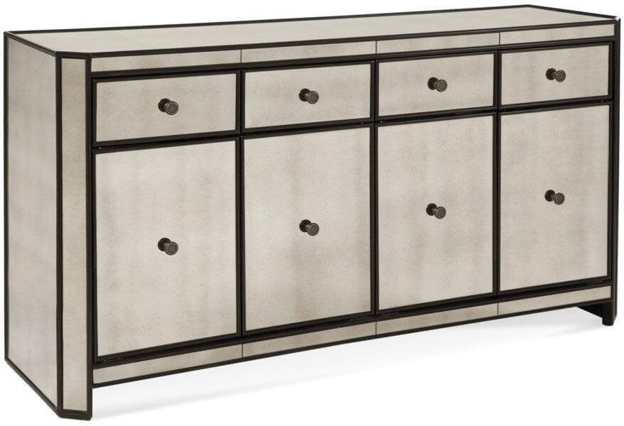 Kent Antique Mirror with Black hardwood finish detail Buffet with 4 doors and 4 cabinet doors