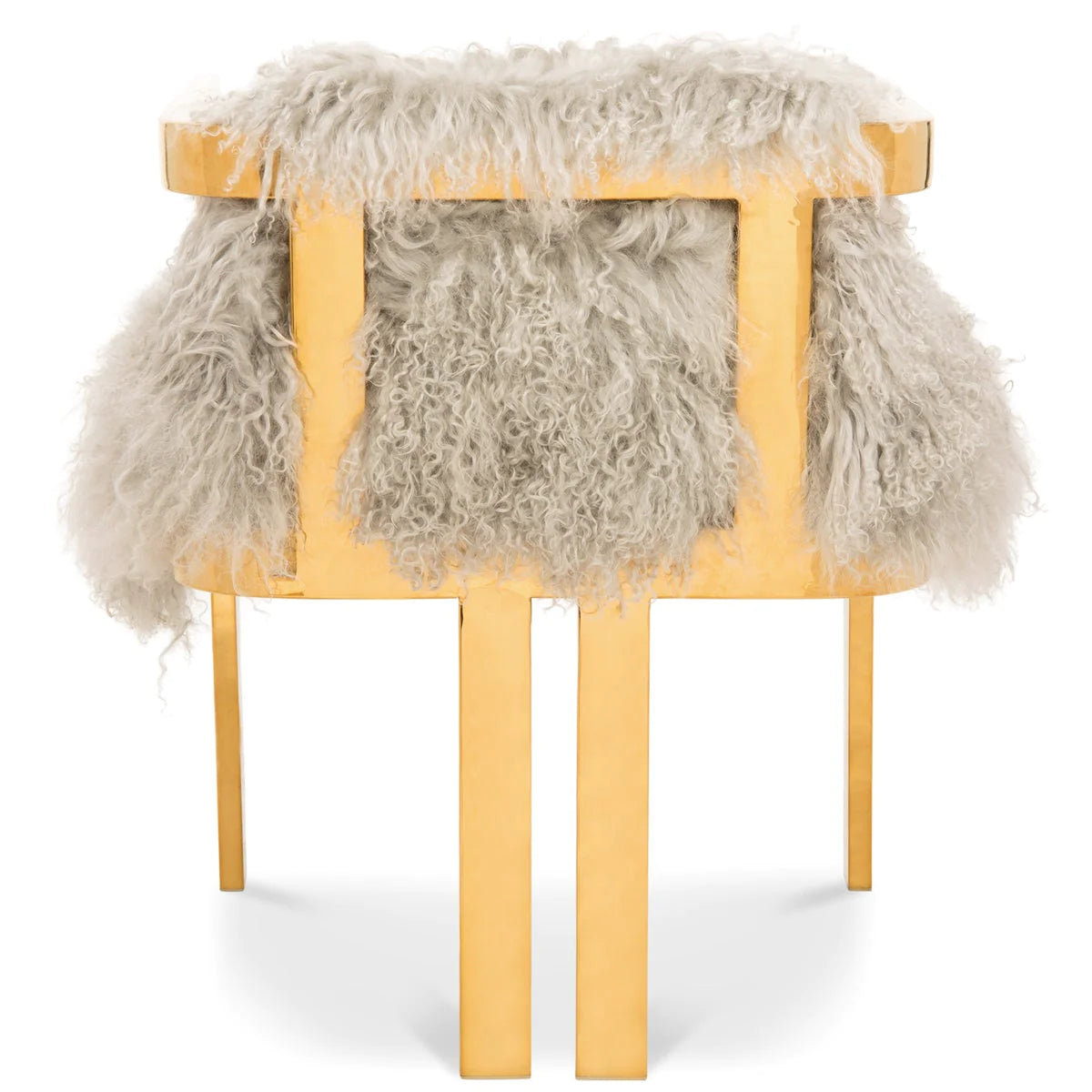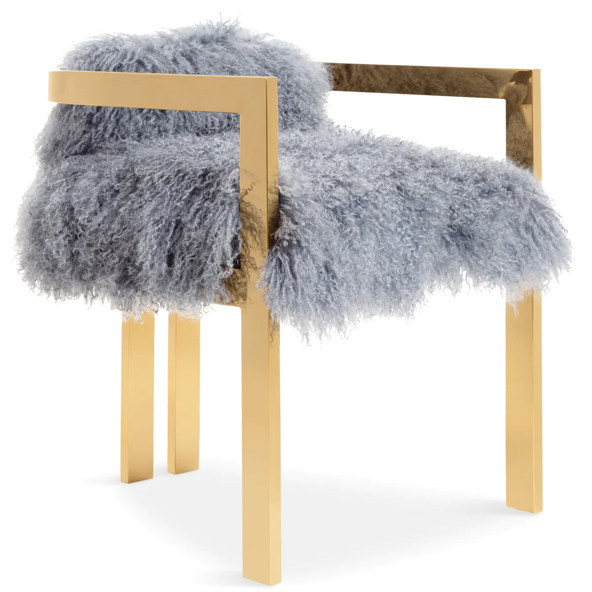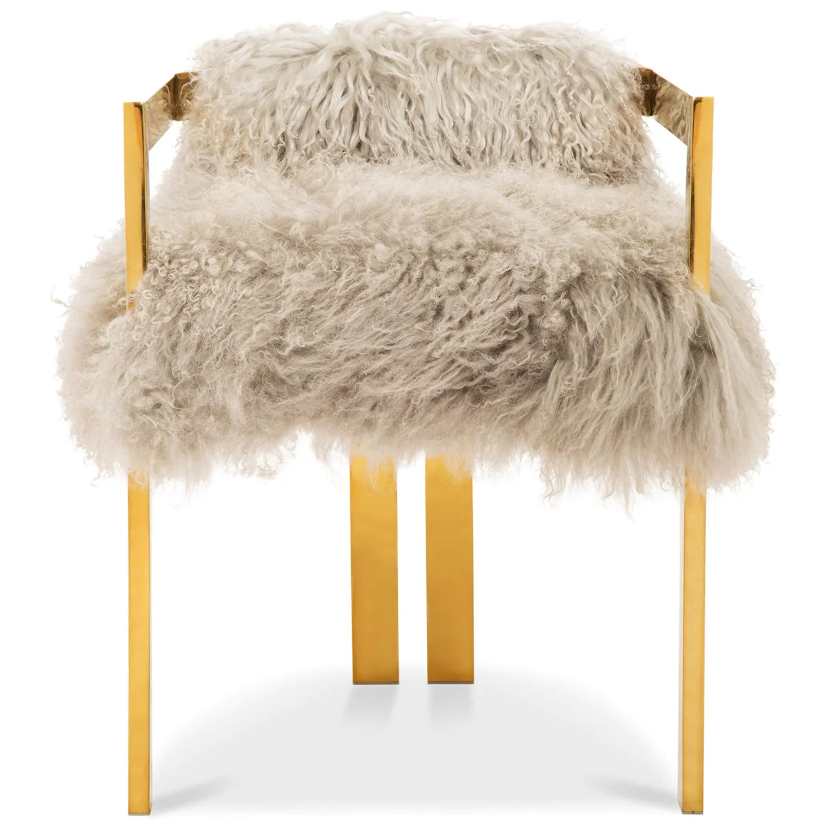 Introducing our all new Kingpin Dining Chair. With a unique brass frame and genuine mongolian fur upholstered seat and backrest, you’ll surely feel like a kingpin sitting in this elegant one-of-a-kind chair.