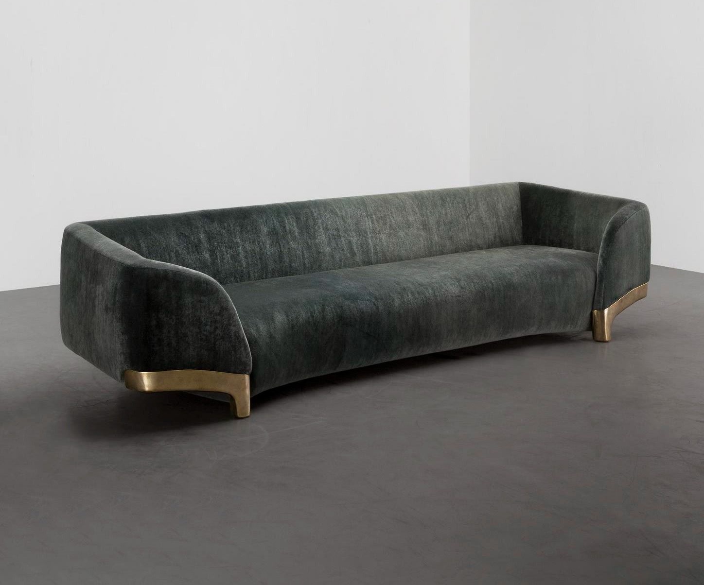 Lagerfeld Sofa embraces the inherent texture of the rich velvet featuring sleek lines, cast brass elements, and intricate detailing, the Lagerfeld Sofa seamlessly fuses classic craftsmanship with modern aesthetics. Its simple yet elegant linear structure renders the sofa timeless in its aesthetic, a hallmark for Avant Garde Design. We can customise this sofa to any size and finish.