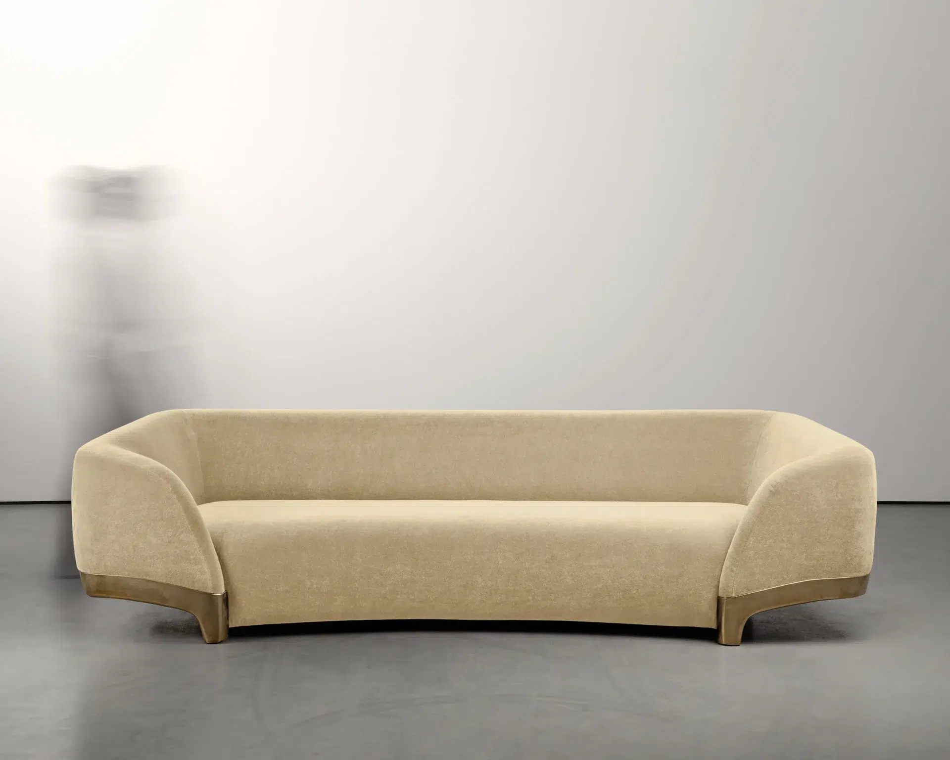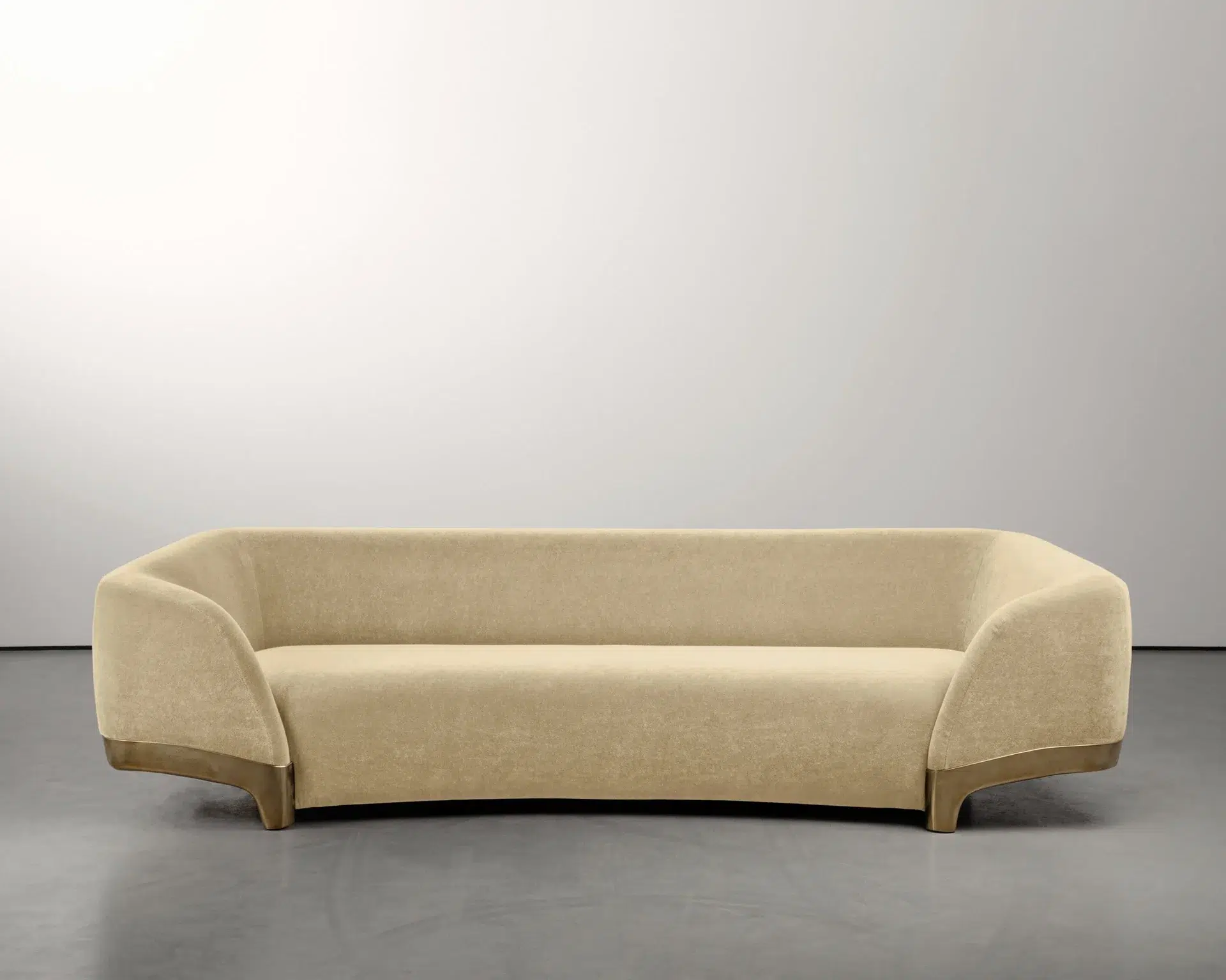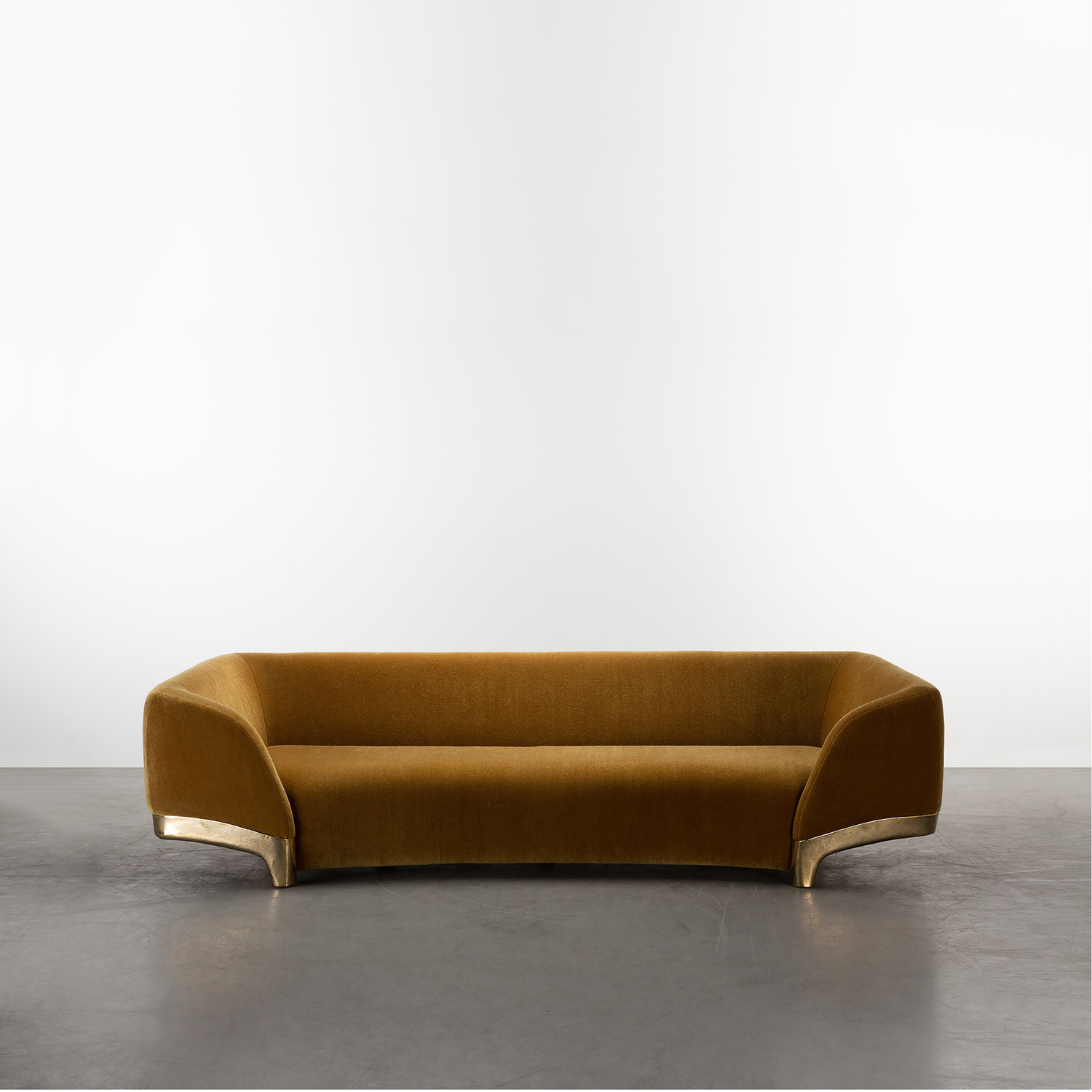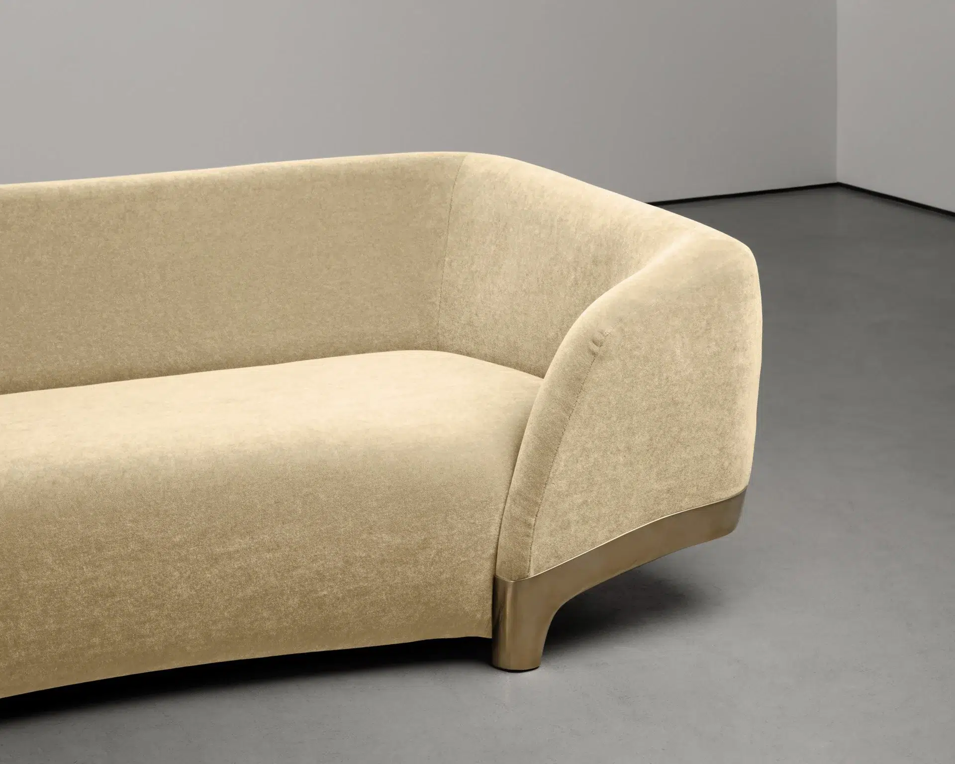 Lagerfeld Sofa embraces the inherent texture of the rich grey mohair, allowing it to interact with the surrounding light and casting subtle shadows that dance across its surface. Featuring sleek lines, cast brass elements, and intricate detailing, the Lagerfeld Sofa seamlessly fuses classic craftsmanship with modern aesthetics. Its simple yet elegant linear structure renders the sofa timeless in its aesthetic, a hallmark for Avant Garde Design. We can customise this sofa to any size and finish.