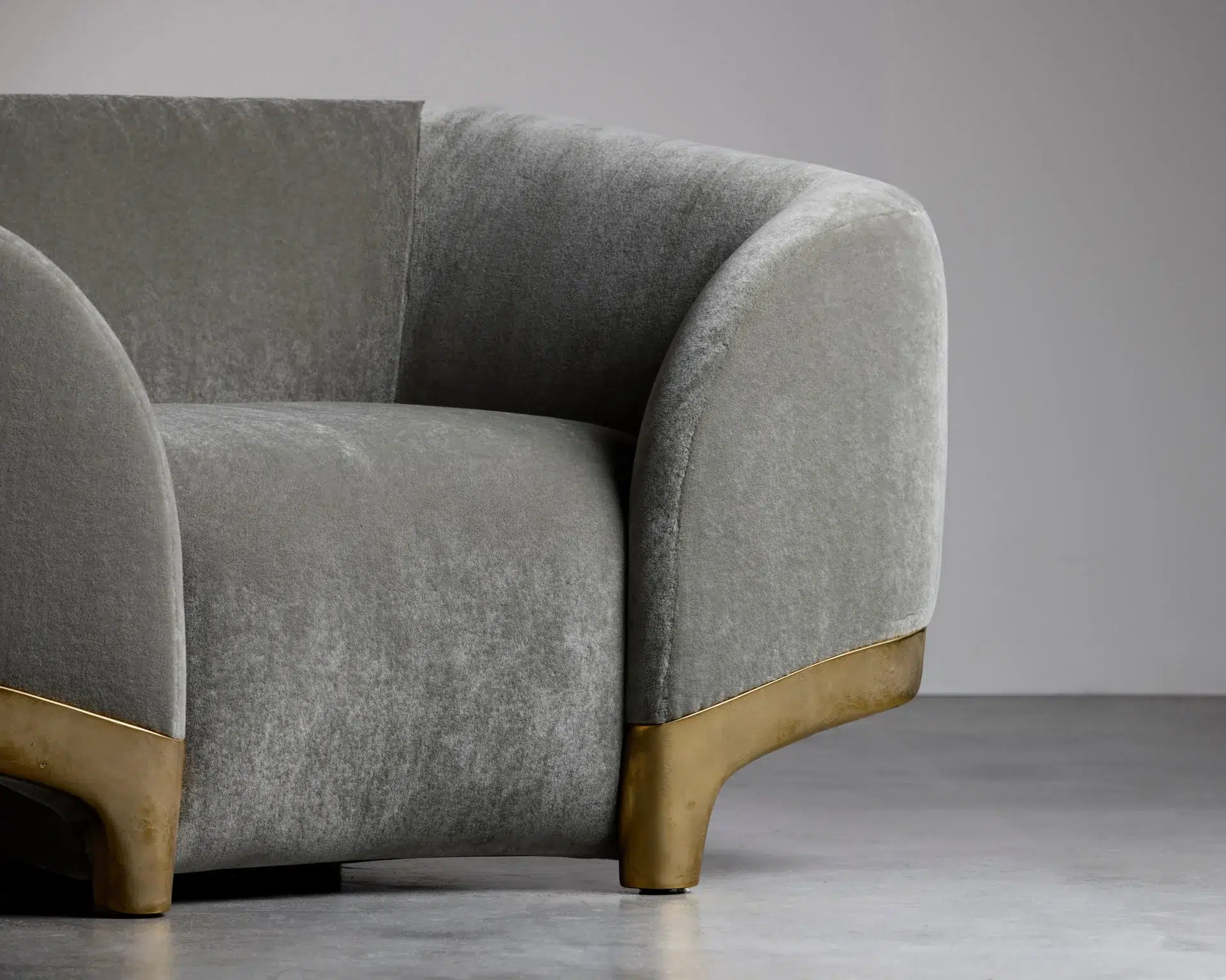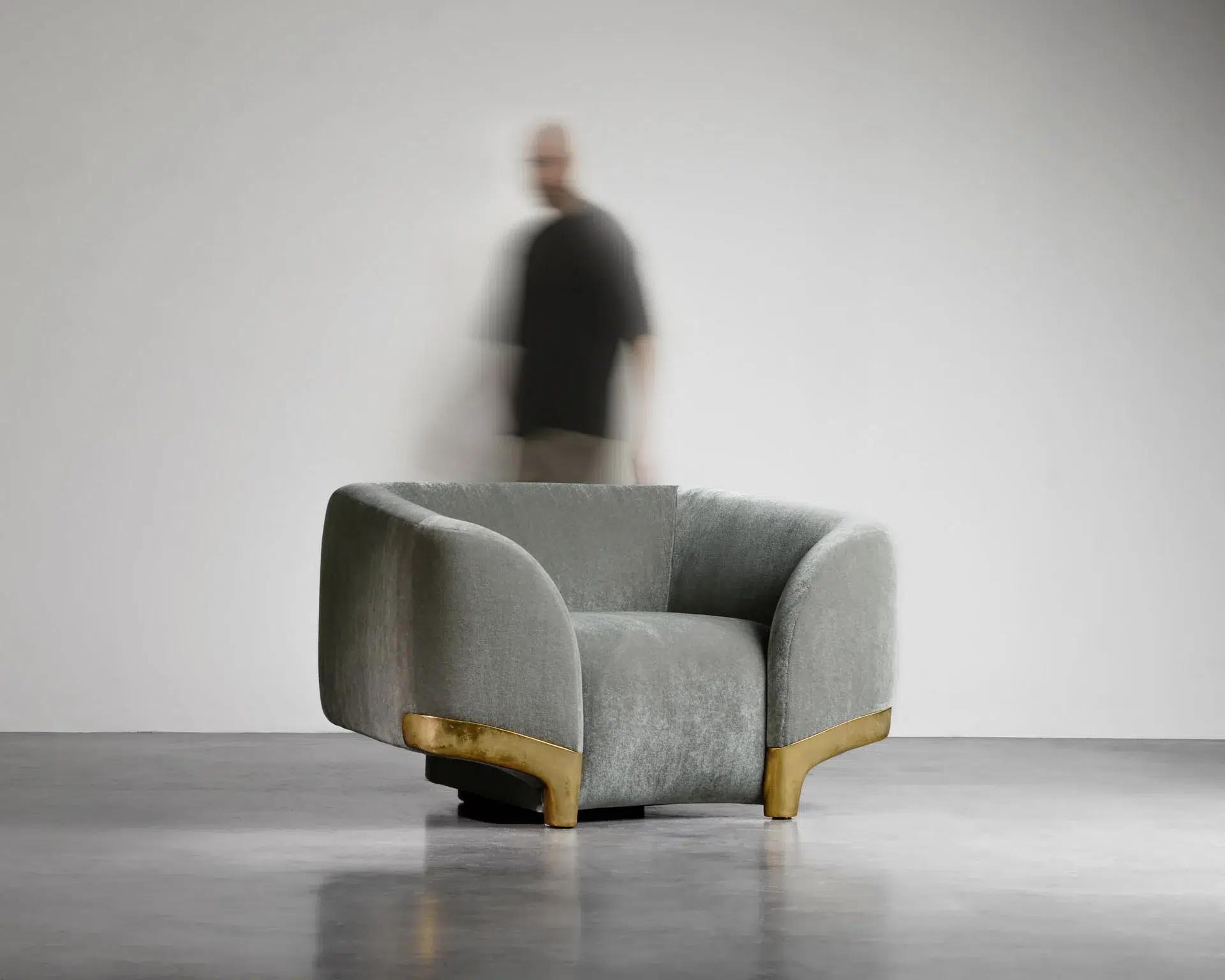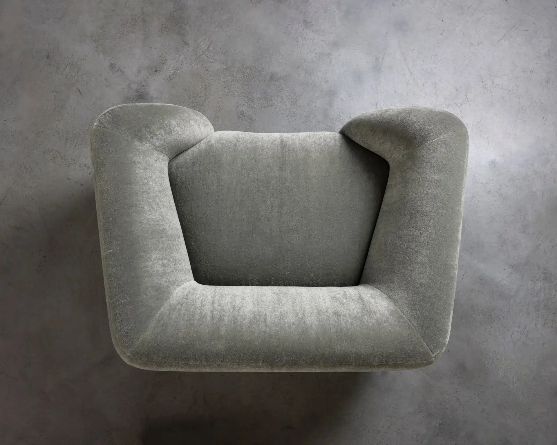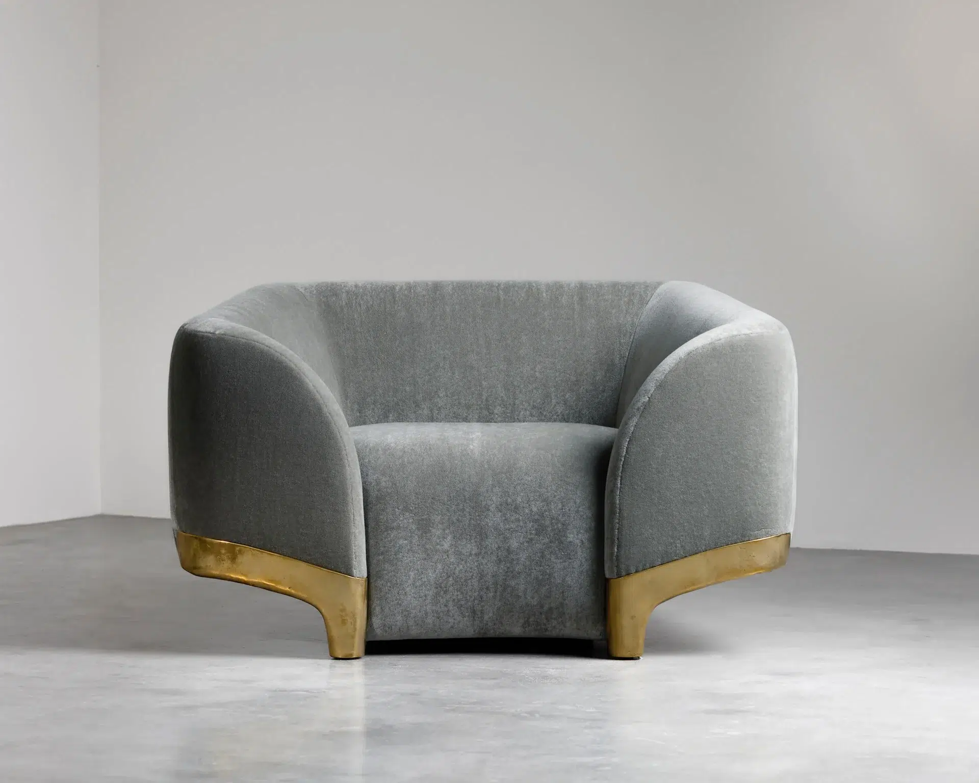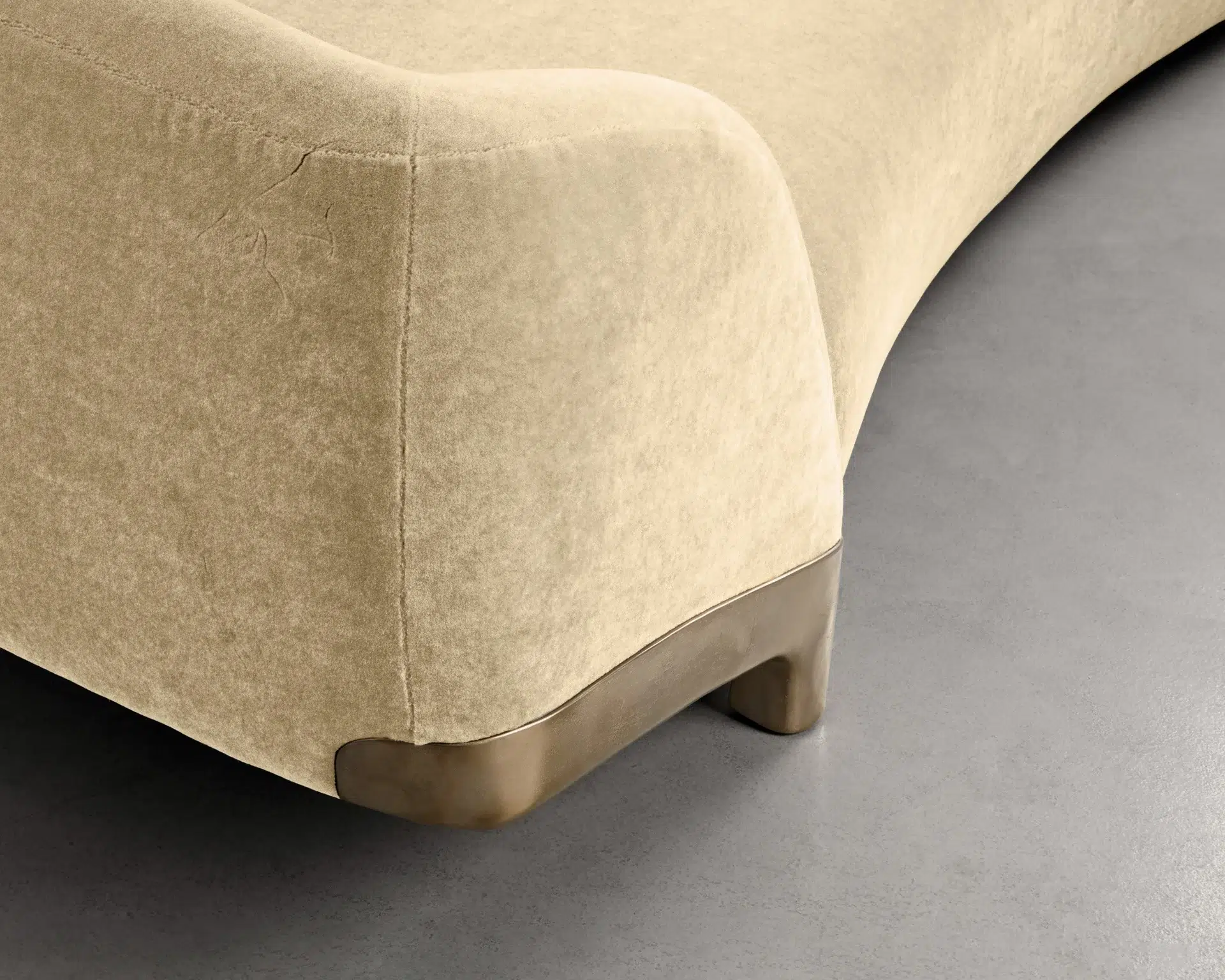 Lagerfeld Sofa embraces the inherent texture of the rich grey mohair, allowing it to interact with the surrounding light and casting subtle shadows that dance across its surface. Featuring sleek lines, cast brass elements, and intricate detailing, the Lagerfeld Sofa seamlessly fuses classic craftsmanship with modern aesthetics. Its simple yet elegant linear structure renders the sofa timeless in its aesthetic, a hallmark for Avant Garde Design. We can customise this sofa to any size and finish.