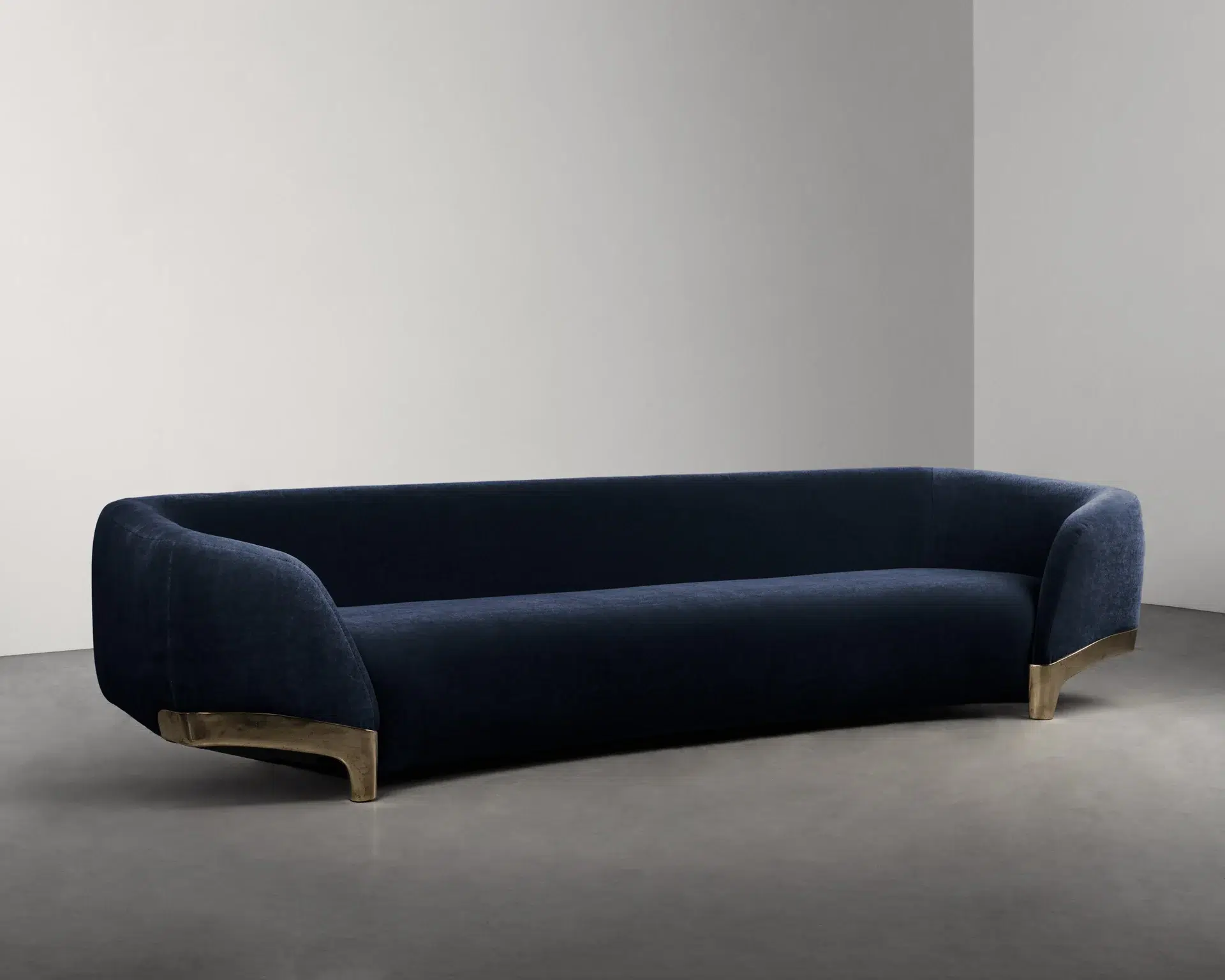 Lagerfeld Sofa embraces the inherent texture of the rich velvet featuring sleek lines, cast brass elements, and intricate detailing, the Lagerfeld Sofa seamlessly fuses classic craftsmanship with modern aesthetics. Its simple yet elegant linear structure renders the sofa timeless in its aesthetic, a hallmark for Avant Garde Design. We can customise this sofa to any size and finish.