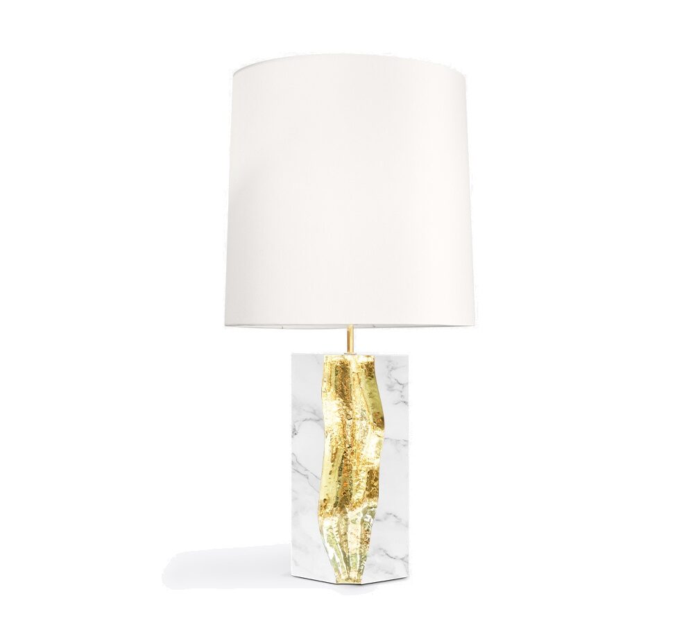 Lapiaz Carrara Marble Brass Table Lamp with White Shade