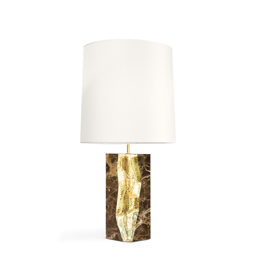 Lapiaz Emperador Marble Brass Table Lamp with White Shade