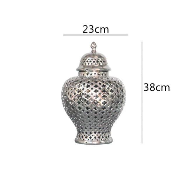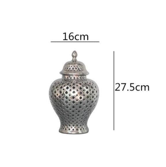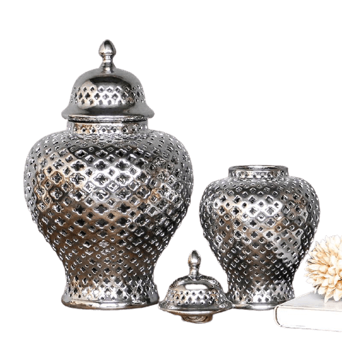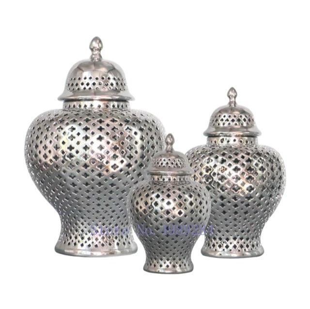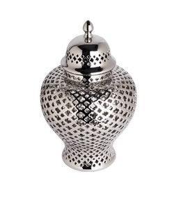 Lattice Silver Ceramic Temple Jar Set