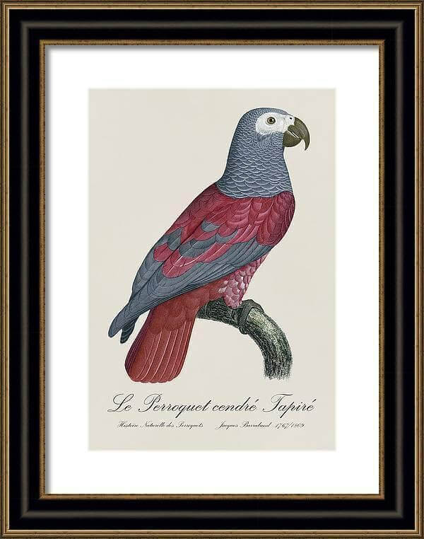 Le Perroquet Langlois – Restored 19th century parrot illustration by Jacques Barraband in Black with Gold frame.