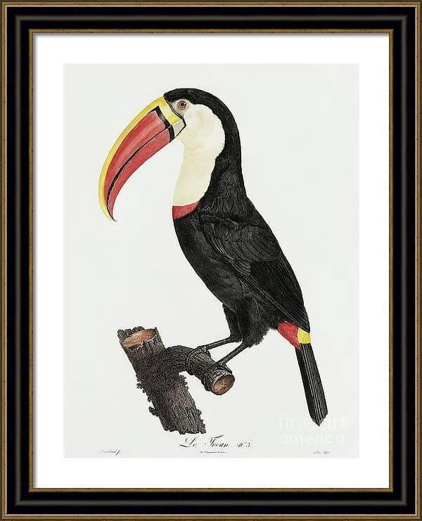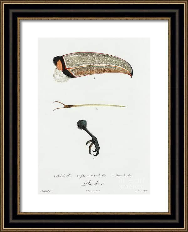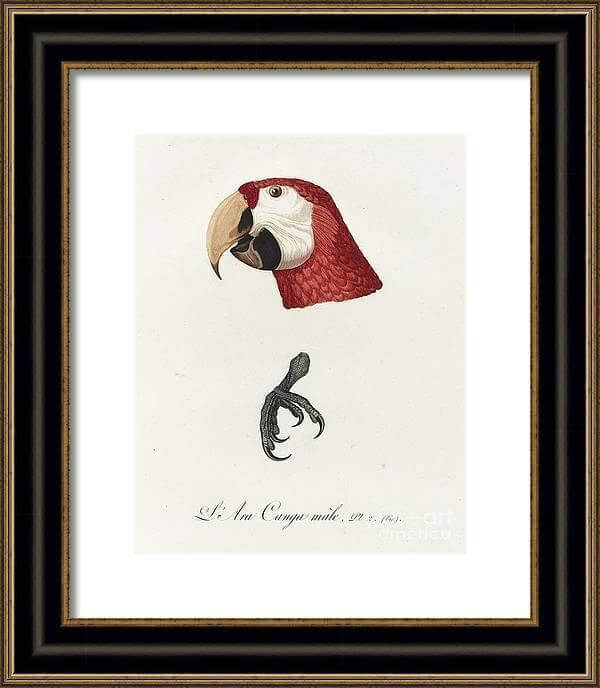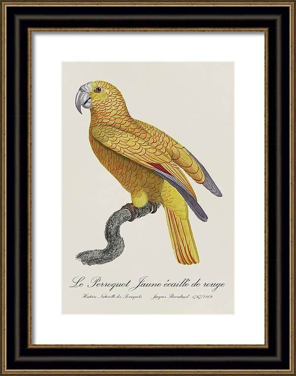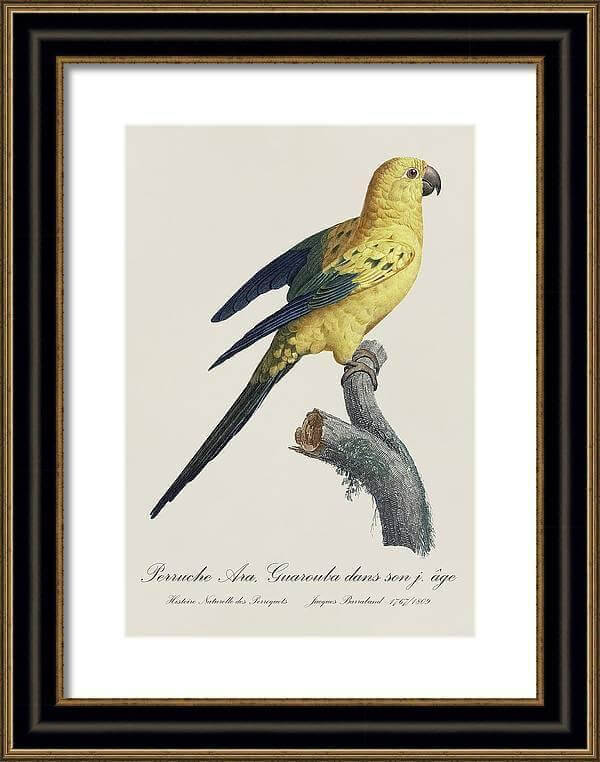 Le Perroquet Langlois – Restored 19th century parrot illustration by Jacques Barraband in Black with Gold frame.
