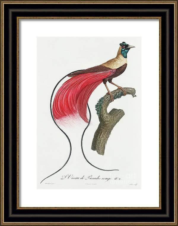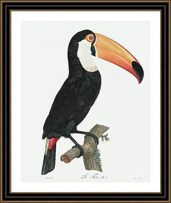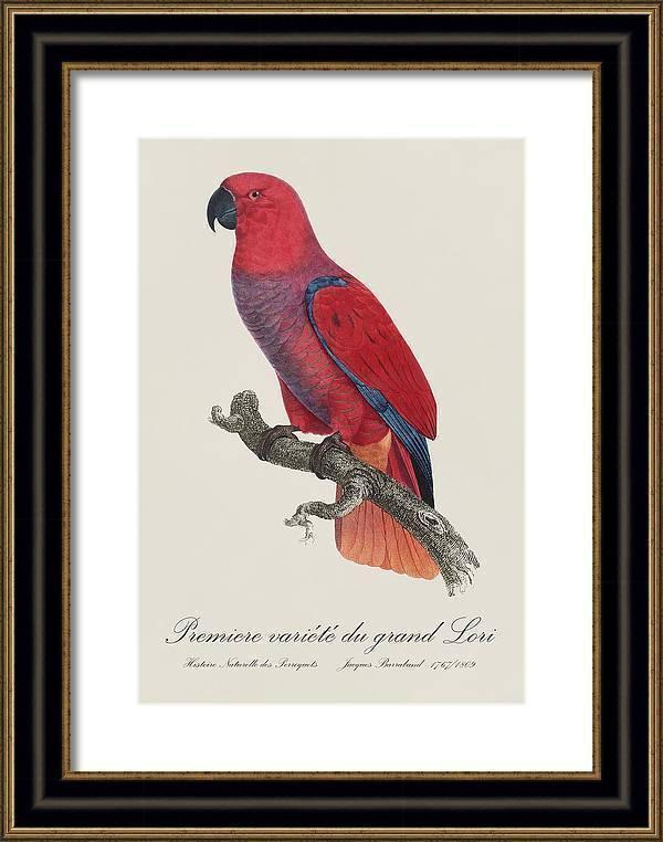 Le Perroquet Langlois – Restored 19th century parrot illustration by Jacques Barraband in Black with Gold frame.