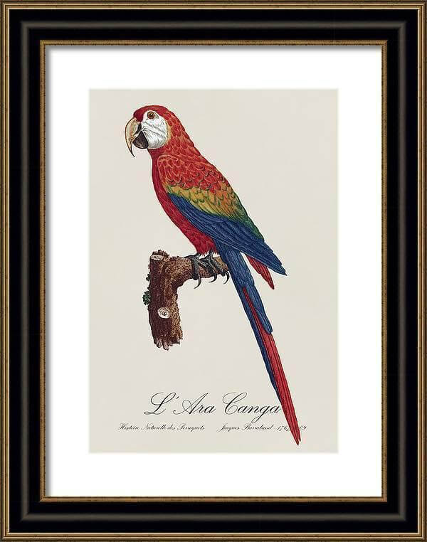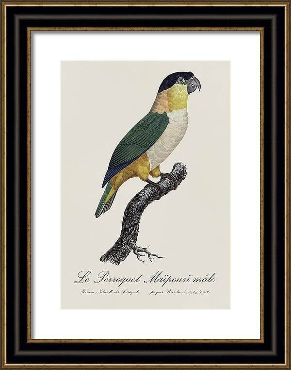 Le Perroquet Langlois – Restored 19th century parrot illustration by Jacques Barraband in Black with Gold frame.