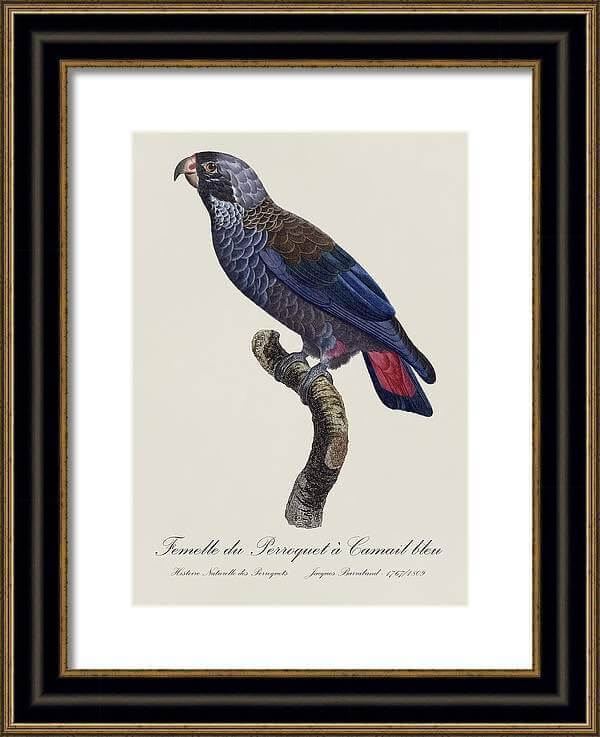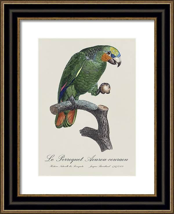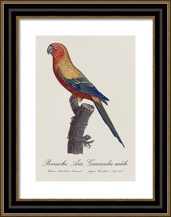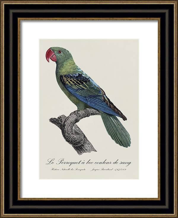 Le Perroquet Langlois – Restored 19th century parrot illustration by Jacques Barraband in Black with Gold frame.