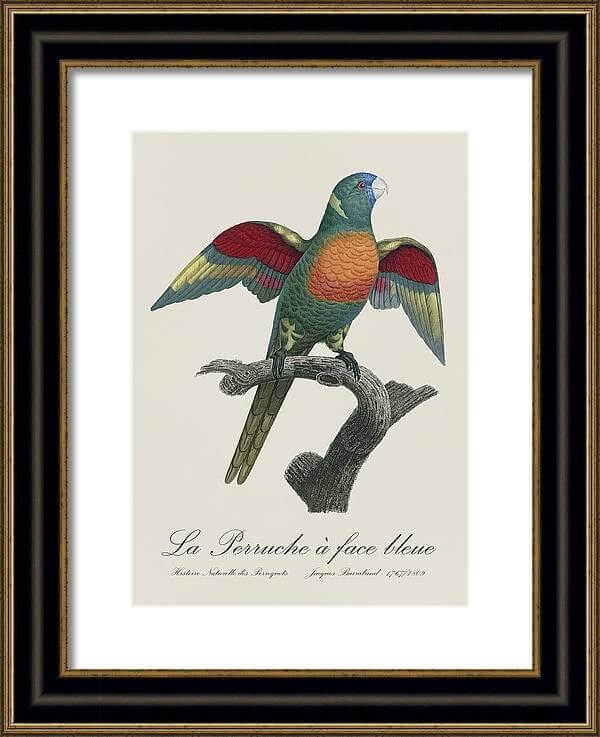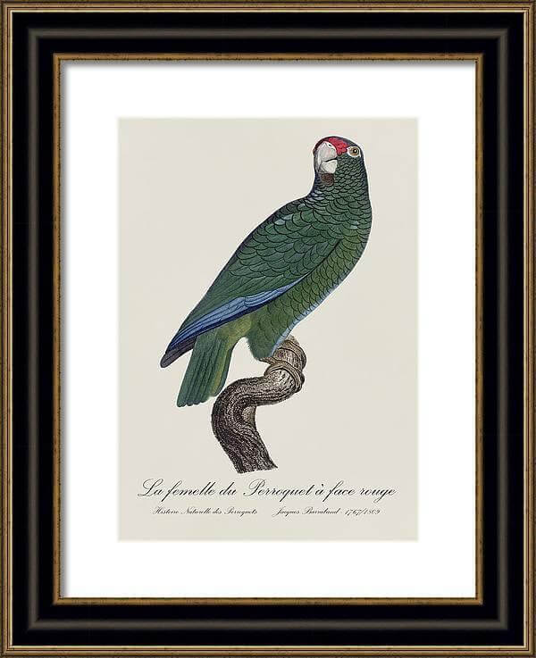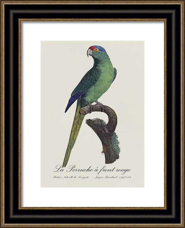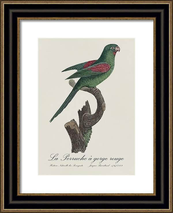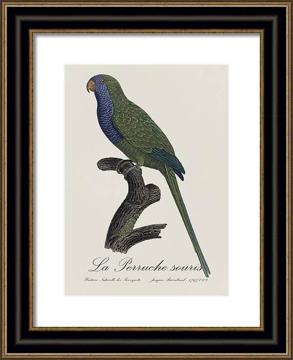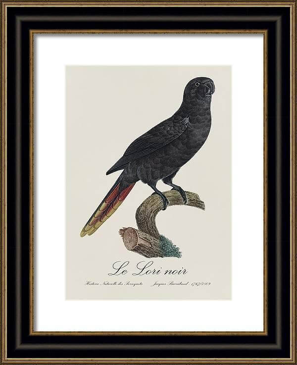 Le Perroquet Langlois – Restored 19th century parrot illustration by Jacques Barraband in Black with Gold frame.