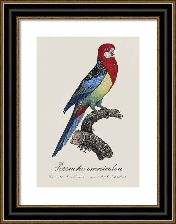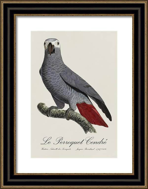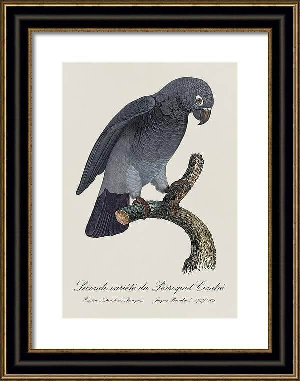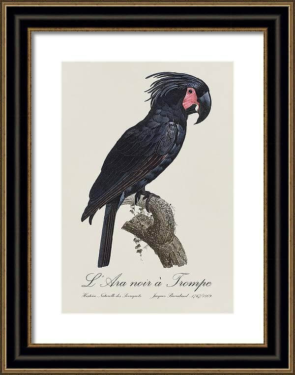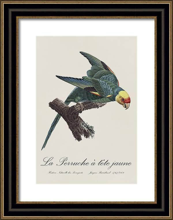 Le Perroquet Langlois – Restored 19th century parrot illustration by Jacques Barraband in Black with Gold frame.