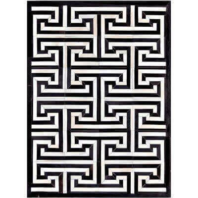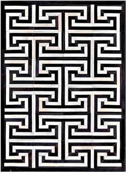 Legacy Greek Key Black White Brazilian Cowhide Rug – Per/sqm