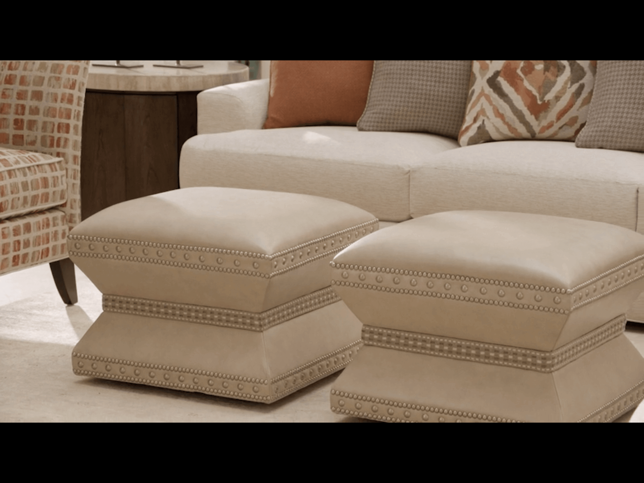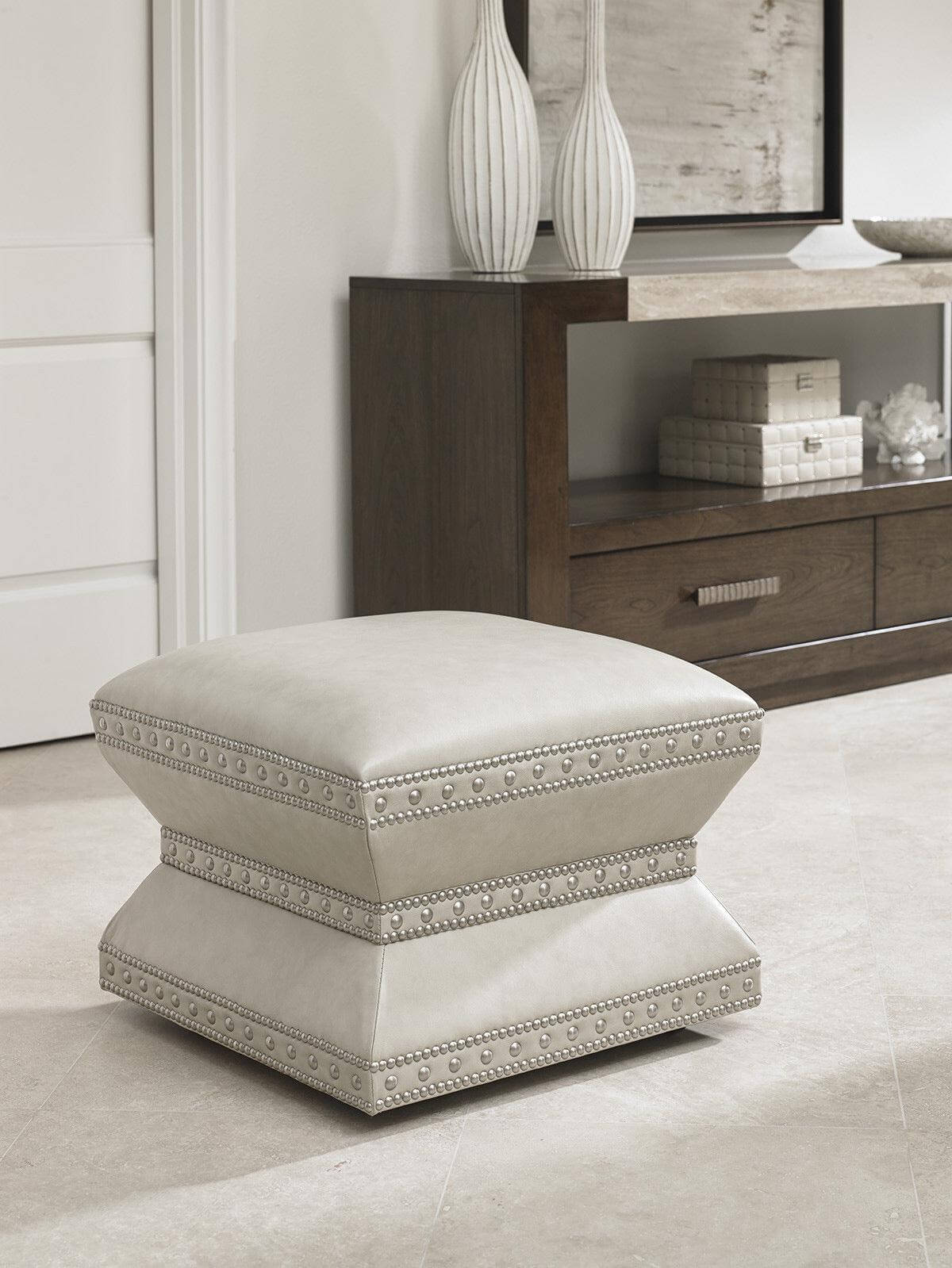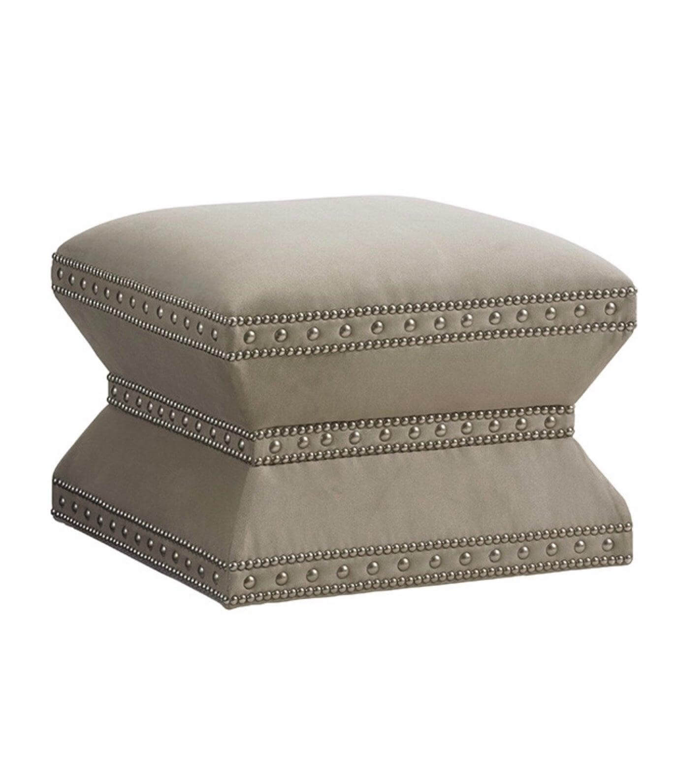 Lexington Beige Velvet Chrome Ottoman Stool