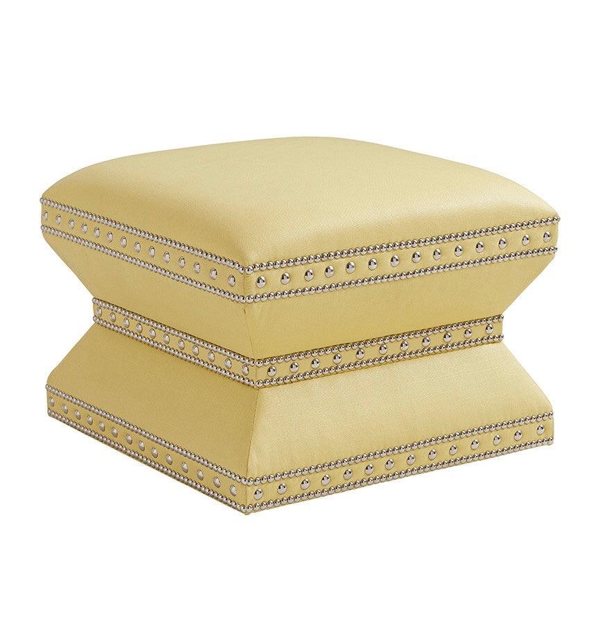 Lexington Light Yellow Velvet Chrome Ottoman Stool