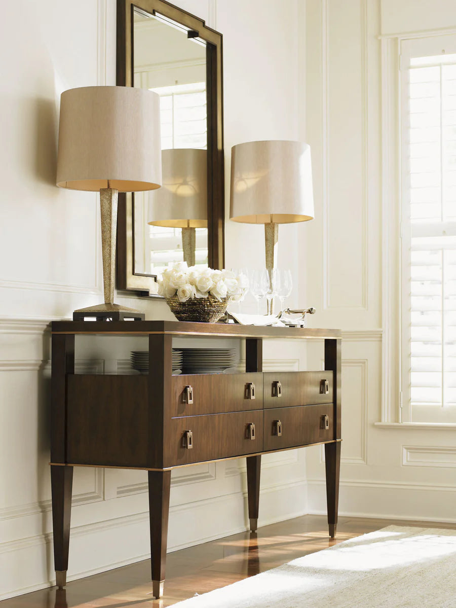 The sophisticated design is highlighted by brass accents and brushed brass finished metal ferrules and custom hardware.