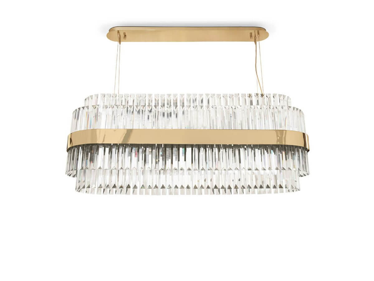 Inspired by the famous Statue of Liberty, Our Libertine collection takes the form of a sophisticated liner chandelier lamp. An elegant design made to brighten the best interior design projects, from dining rooms to billiard rooms. Made with brass and crystal glass.