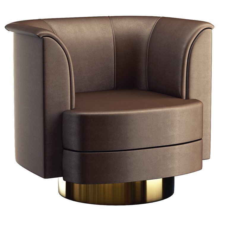 Lusso Brown Leather Brass Swivel Chair