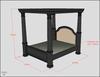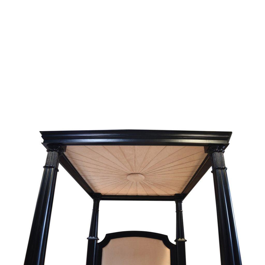 Our grandest bed exudes stately glamour and utter decadence. The four posters are framed by an upholstered roof. Think of the fairy tale, the Princess and the Pea and you’ve got it!