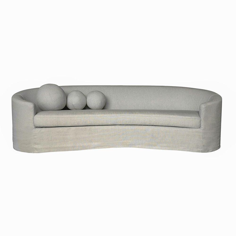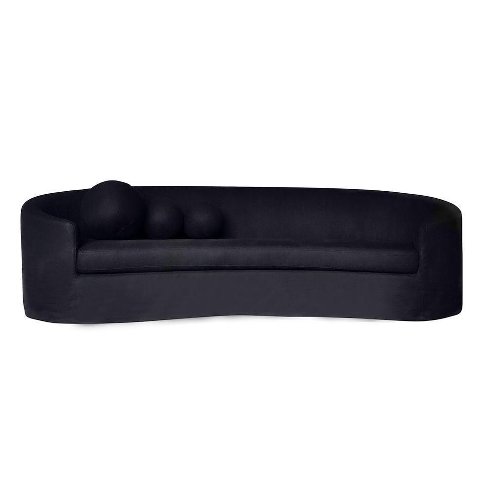 Black linen blend slip cover sofa. Classic French style with elegant curved silhouette, makes this sofa a statement with a modern contemporary feel in any living room décor. Upholstered fitted slip cover is easily removed for cleaning. Made with sturdy solid hardwood timber frame with webbing and inner spring suspension. The Manolo Seater also includes three rounded scatter cushions.