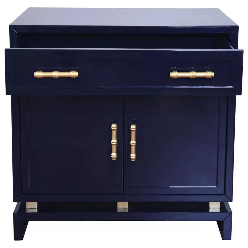 Marcus Navy Lacquer Gold Leaf Cabinet