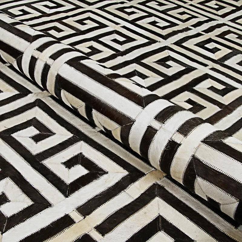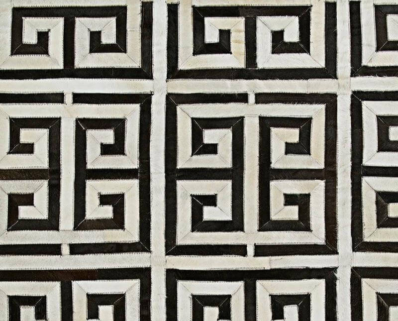 Our Meander Patch Hide Rug Design No. 312 is made using only premium, high quality hides, and can be customized in any size and shape.