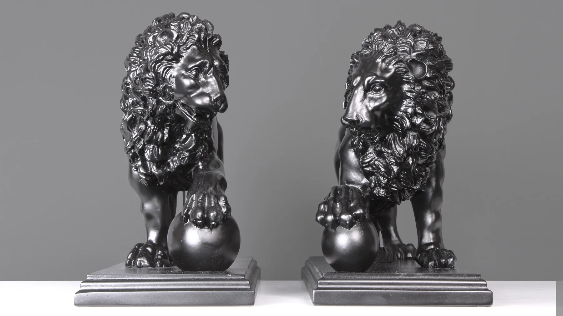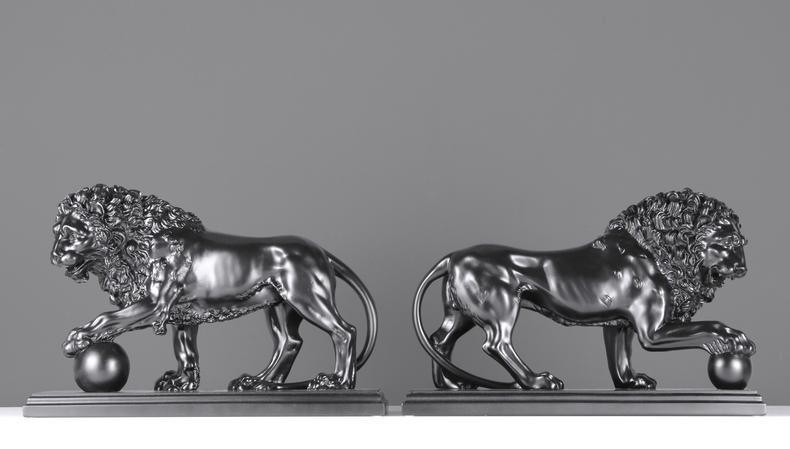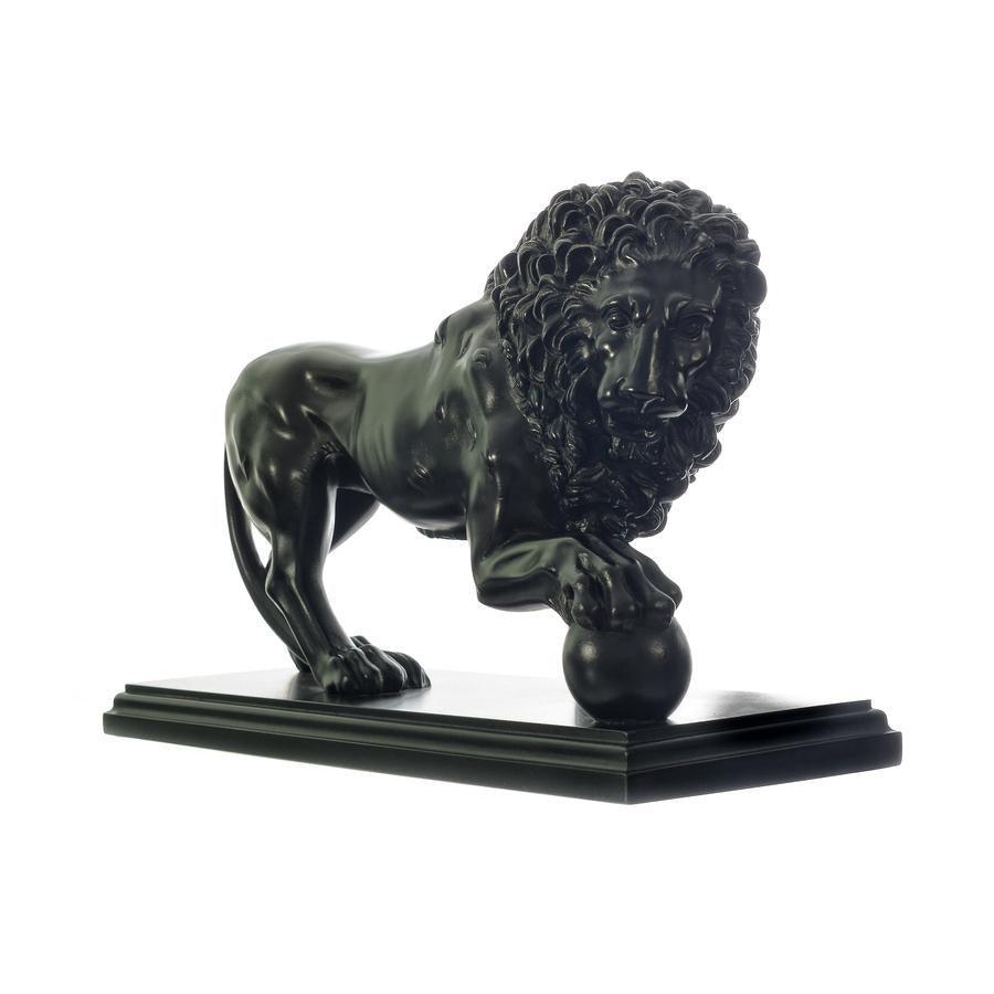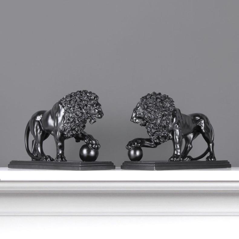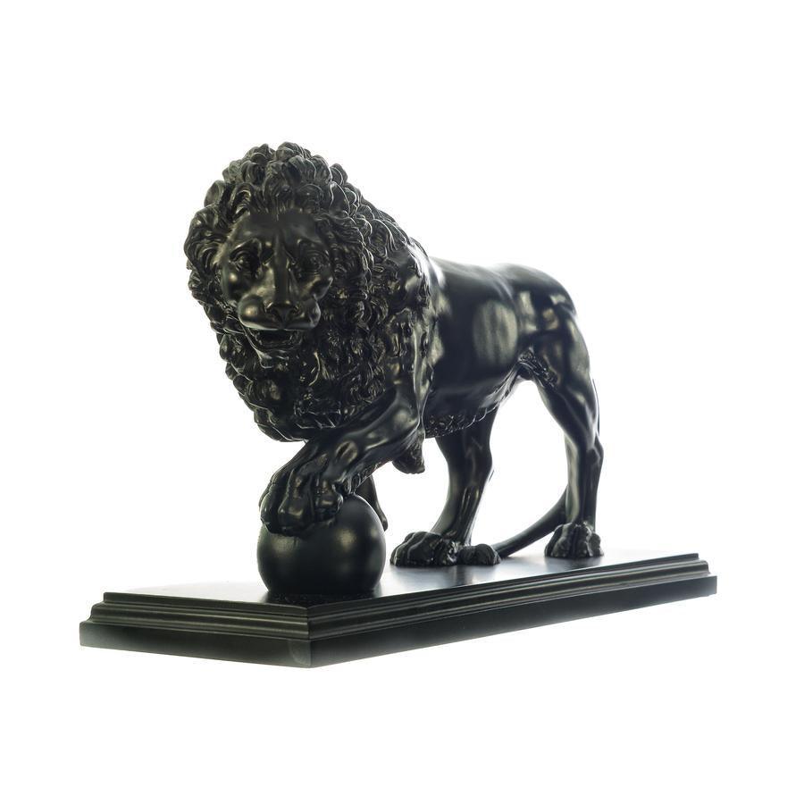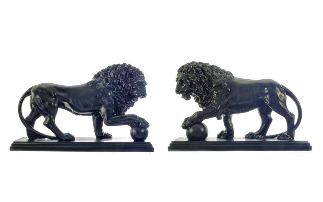 The Medici & Vacca Lions on Black Marble. Owned by the Medici family in Italy the original marble lions date back to the Second Century BC. Our beautifully sculptured and finished pair of marble Medici lions are mounted on a smooth black base with detailed edging. The marble is smooth and cold to the touch with very fine detail. Made from 90% Nero marble. These are a stunning and heavy pair of marble sculptures that would grace any modern or traditional home and a real talking point.