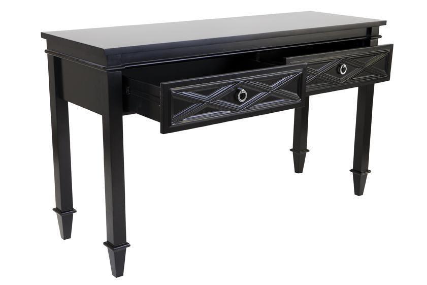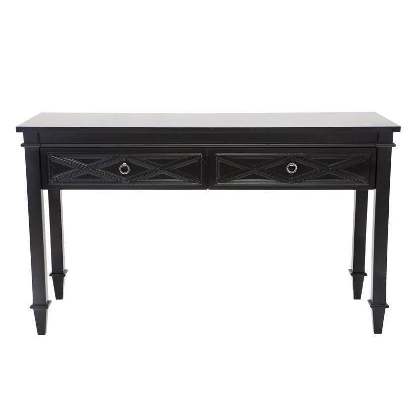 Perfect for a sophisticated coastal or refined Hamptons interior style, the Mercer range is one of our favourites that incorporates all the classic elements into a functional and stylish design. A raised diamond pattern adorns the front of the Mercer console table, a rich black satin finish complimented with polished nickel handles enhance a simple monochrome colour palette, whilst allowing you to maintain a crisp and open space.