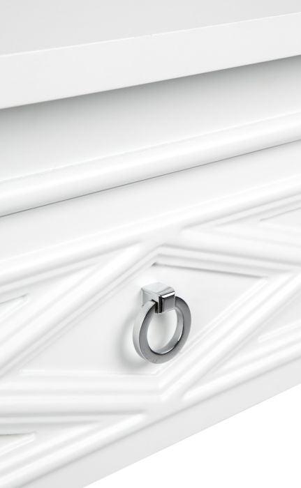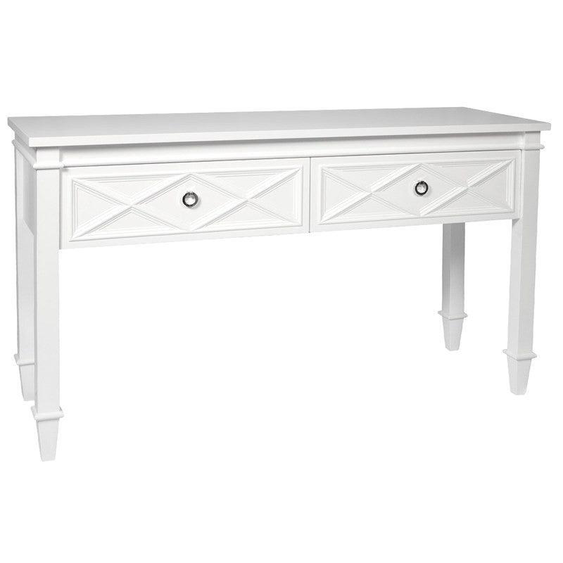 Perfect for a sophisticated coastal or refined Hamptons interior style, the Mercer range is one of our favourites that incorporates all the classic elements into a functional and stylish design. A raised diamond pattern adorns the front of the Mercer console table, a crisp white satin finish complimented with polished nickel handles enhance a simple monochrome colour palette, whilst allowing you to maintain a crisp and open space.