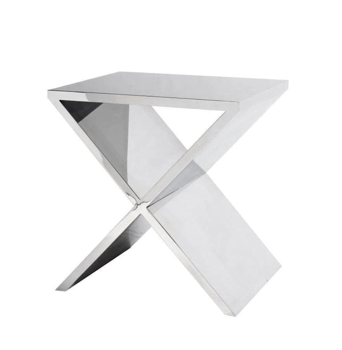 The clean-lined shape of the Metropolitan X Leg Side Table will always satisfy. With its impressive X-shaped base of 304 polished stainless steel and clear glass tabletop, this modern side table proves that the greatest ideas are often the simplest. Discover the sophisticated simplicity of the Metropolitan series. This beautiful design furniture is particularly powerful due to its X-shape and sumptuous smooth surface. Combine with luxury lighting and accessories from the Metropolitan collection to create a metropolitan atmosphere.