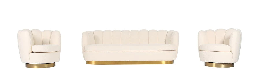 Mirage Light Cream Boucle Brass Swivel Armchair