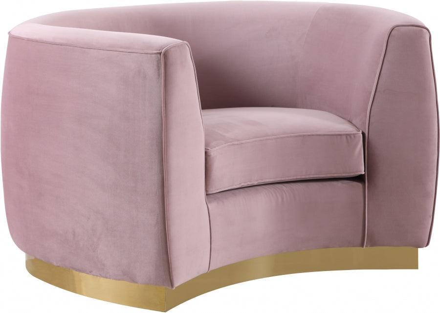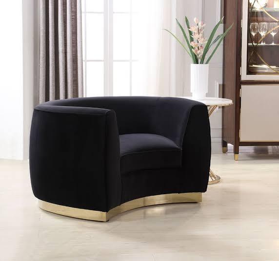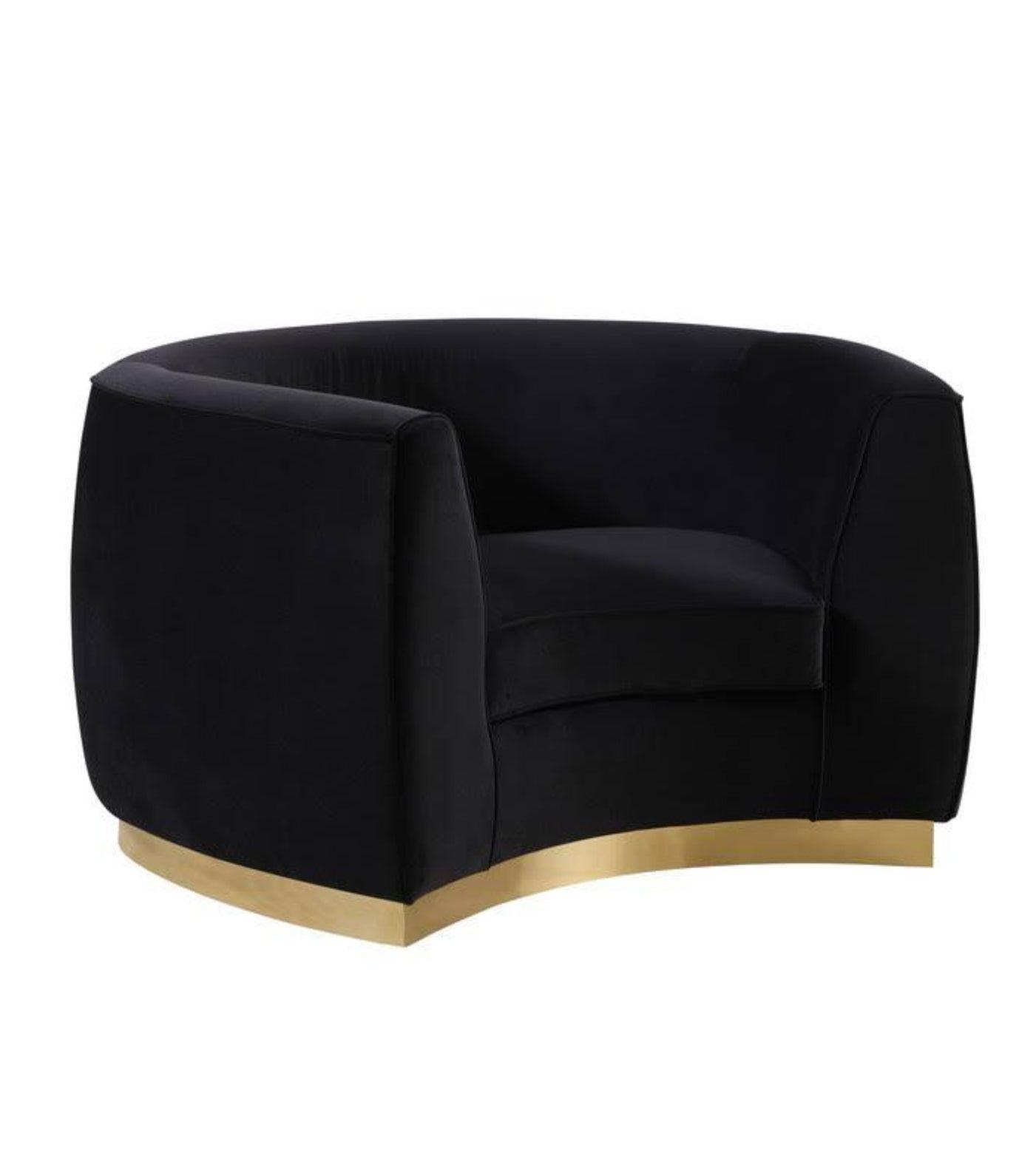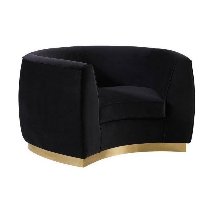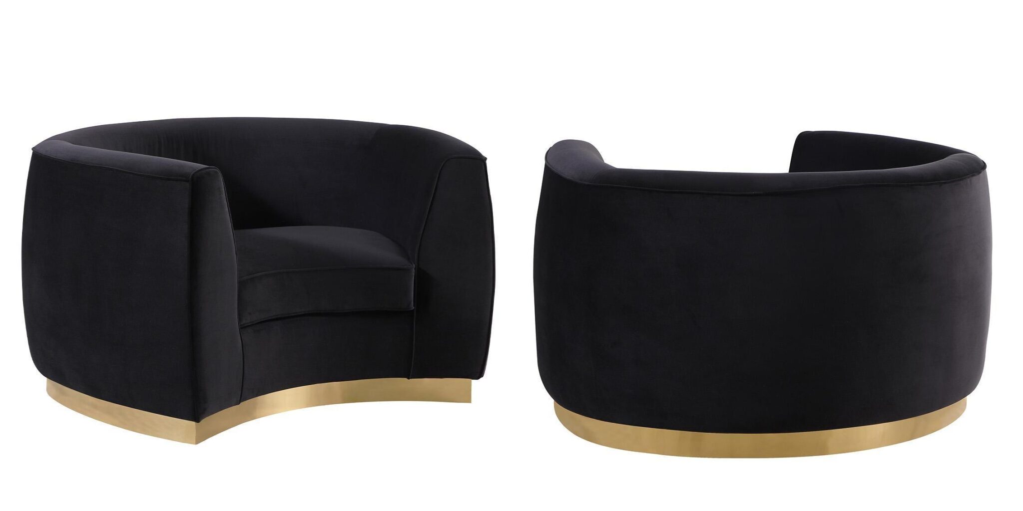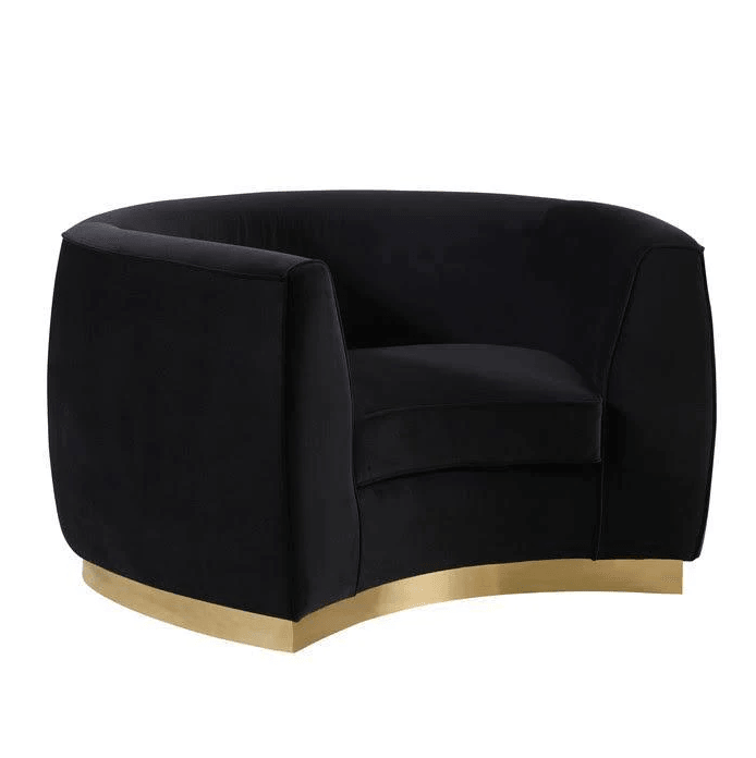 The perfect mix of velvet and gold stainless steel comes to life in your space with the Missoni Accent Chair. This velvet chair comes upholstered in rich, sumptuous-to-the-touch velvet to make a fashionable statement in your space. The curved back design lends it a modish touch, and the gold stainless steel trim around its base adds to its glitzy appeal. Stage this chair alone or with other pieces in the Missoni collection.