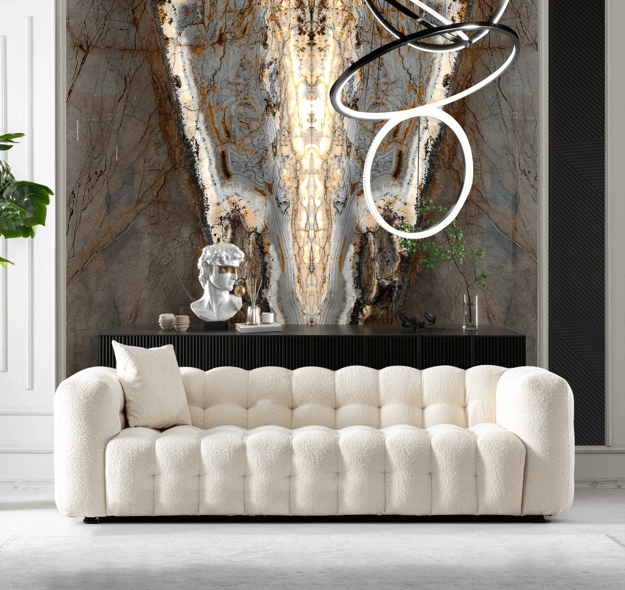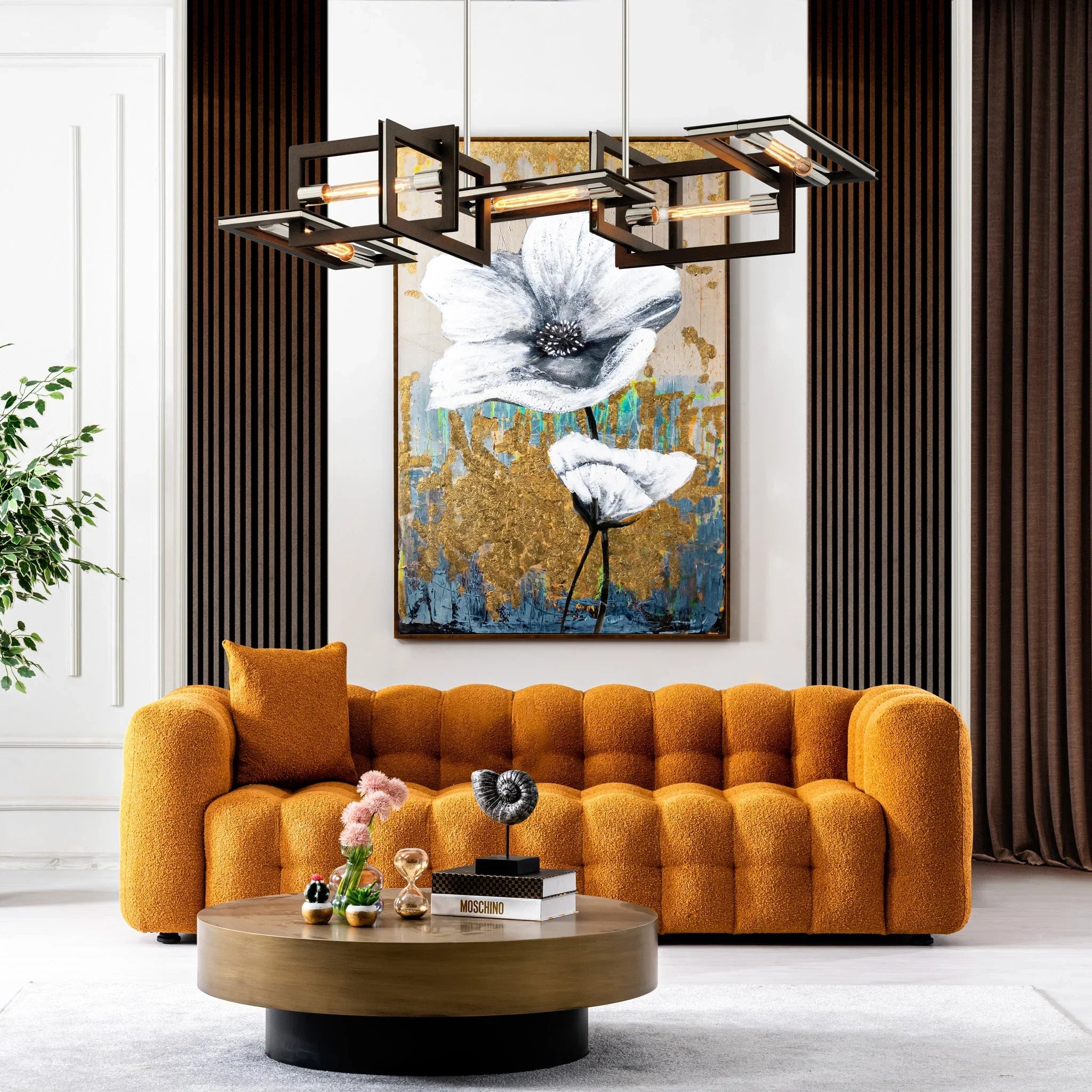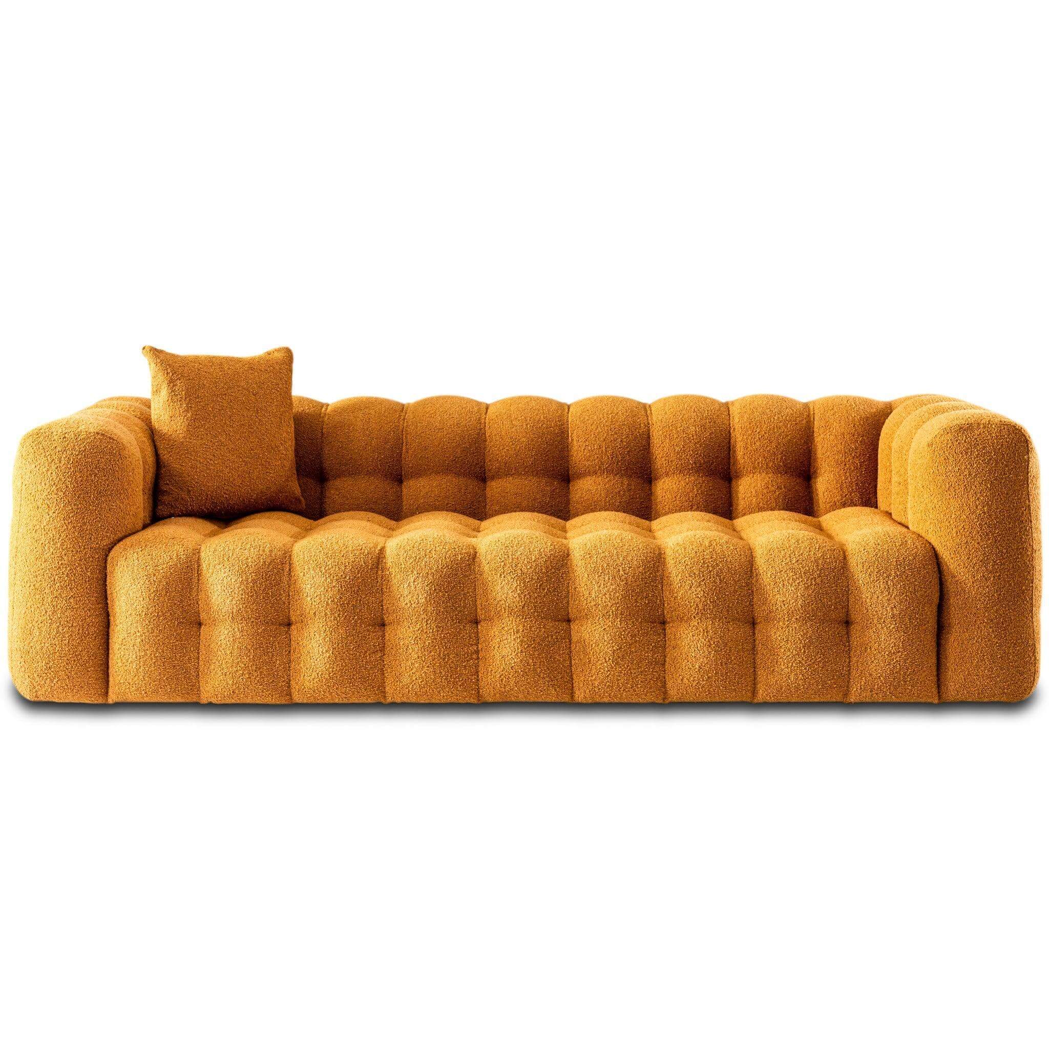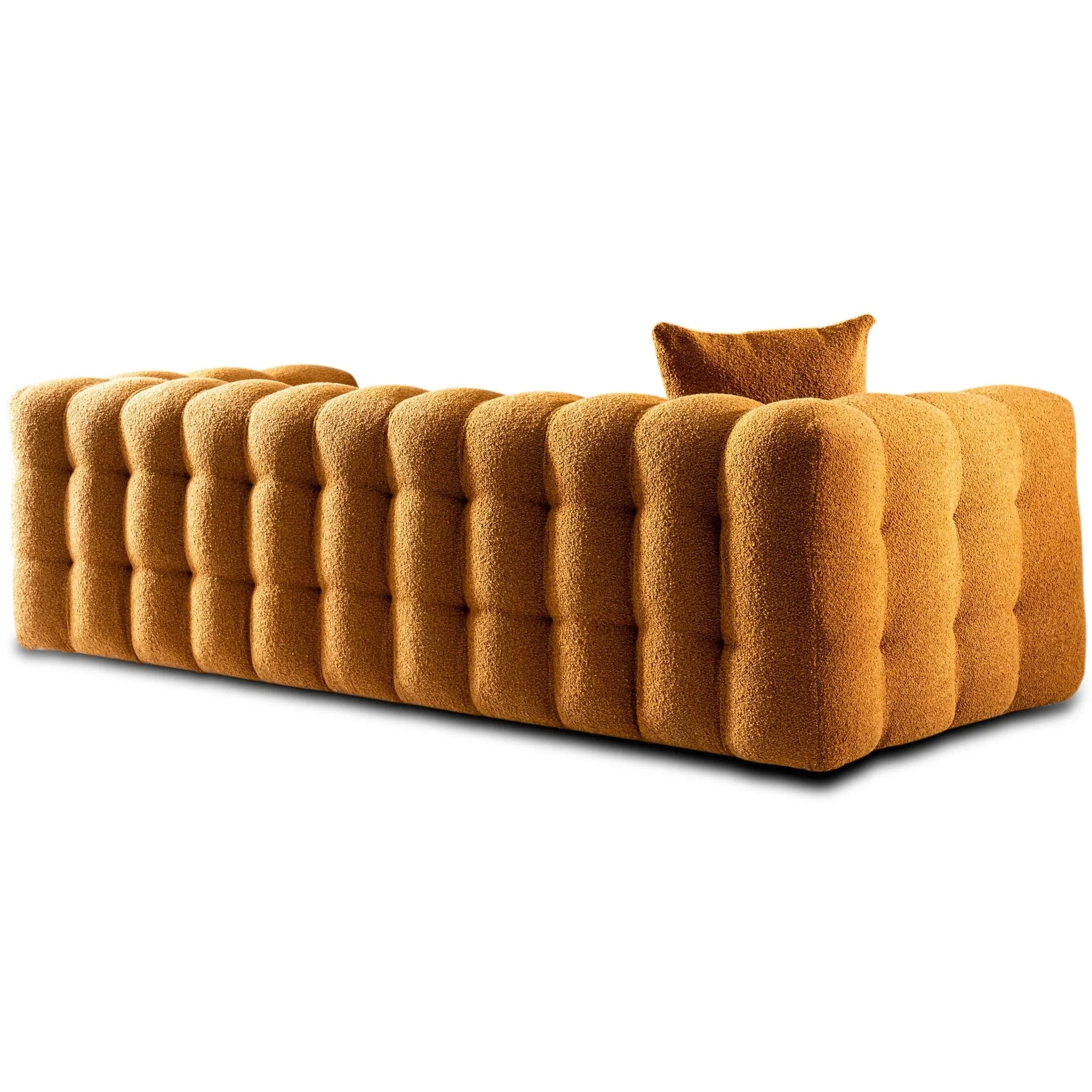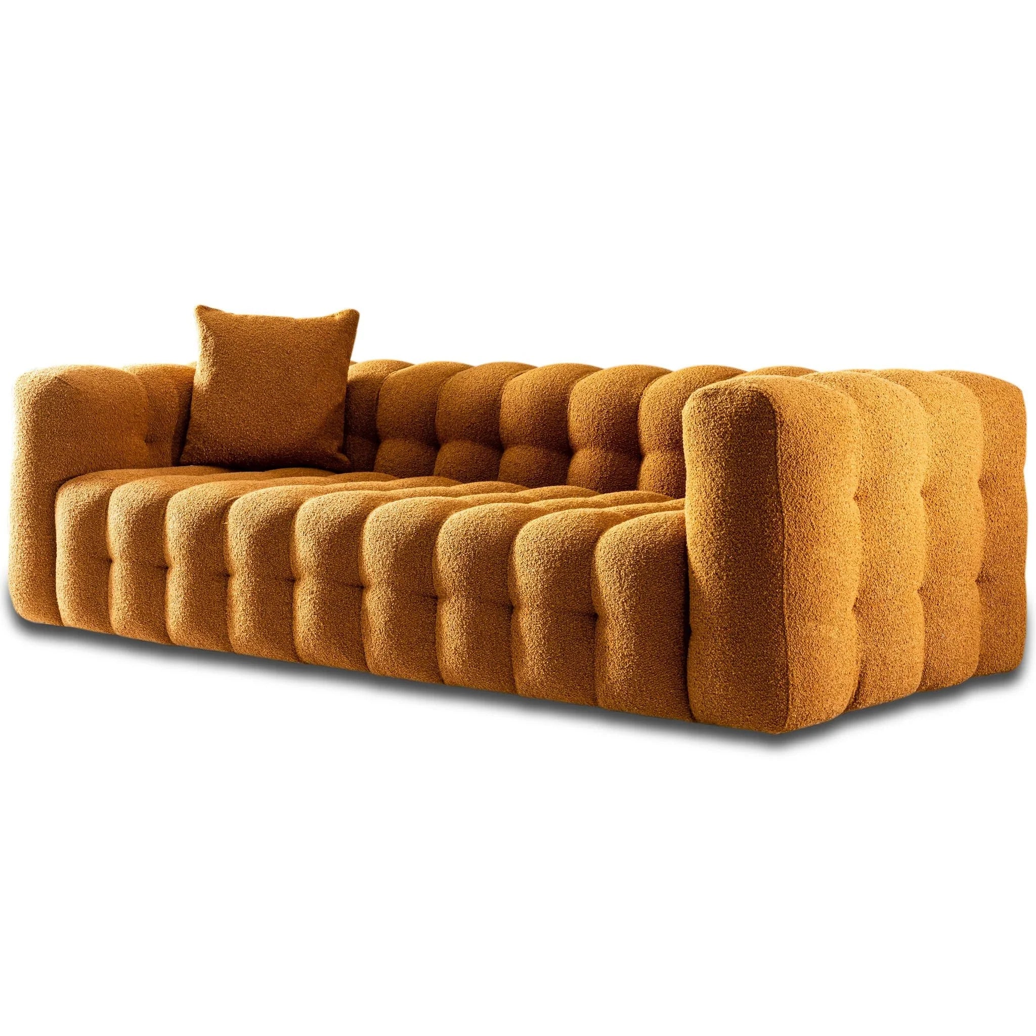 This designer style French boucle sofas creates an inviting space for your guests or family entertainment activities. Combining top-quality craftmanship and high-density foam, this set will provide you with great comfort and undoubtedly become the centerpiece of your apartment , living room, den, urban loft, condo. Available in a wide range of French boucle fabric finishes. Custom size and fabric options available.