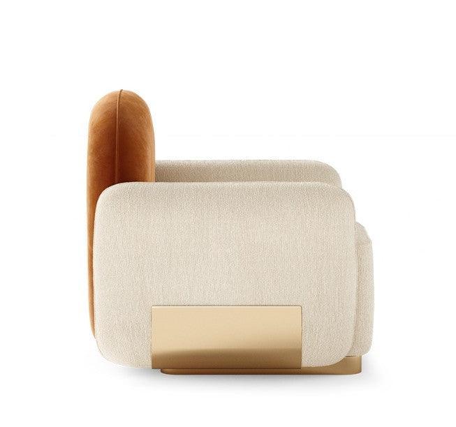 • Mondrian Cream Linen Velvet Brass Armchair