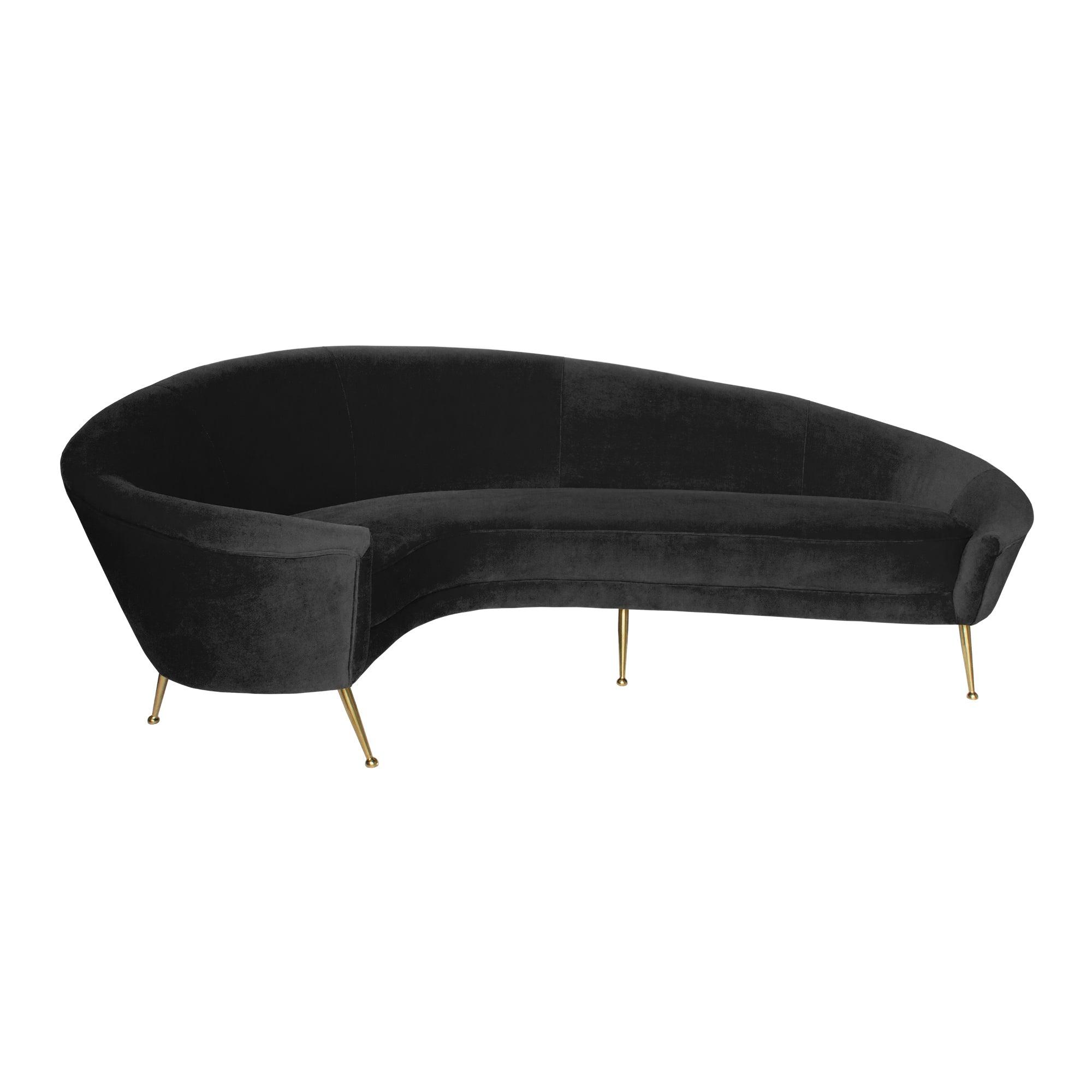 Our modern Monroe Sofa features mid-century design elements while maintaining an edge of contemporary couture. The elegant curves make this sofa a perfect accent in a large living room. Its timeless aesthetic will fit traditional and contemporary interiors. Upholstered in 100% pure polyester velvet for softness and durability.