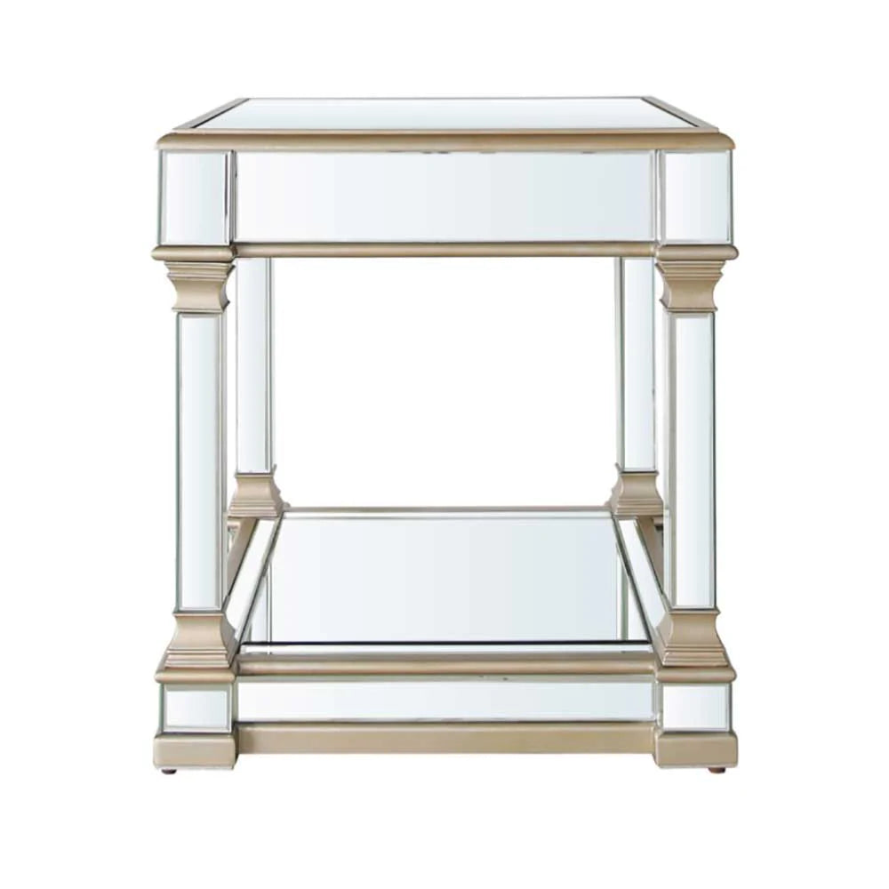A combination of high grade reflective bevelled mirrors and hand painted gold make this collection an absolute winner. Hand made by traditional artisans using quality mirror glass and hand painted gold trims. Matching coffee table, side table, bedside table, ottoman and mirror available in this exclusive collection