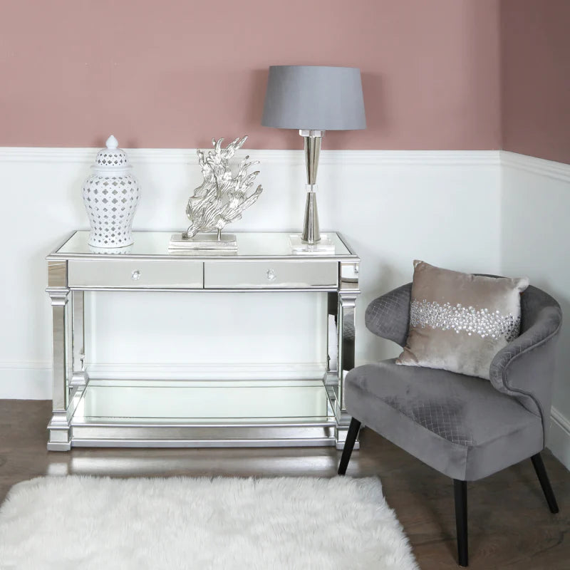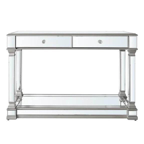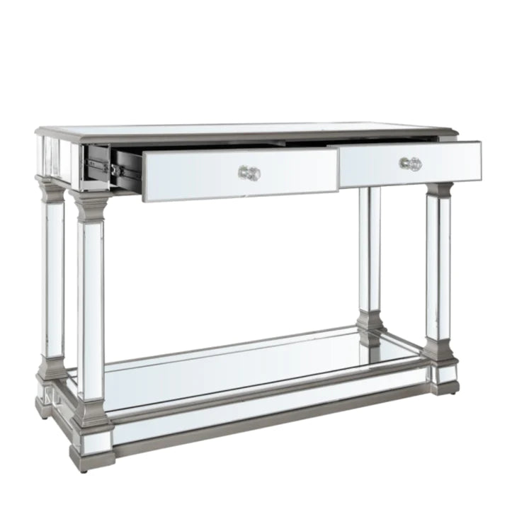 Mirrored Console Table with Silver trim & crystal handles, Available in Champagne, Gold or Silver