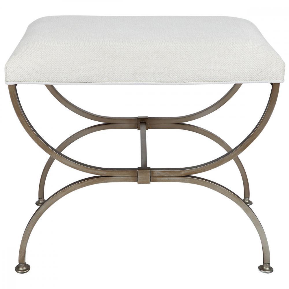 Natural Black cotton viscose upholstered stool. Cross leg style made with solid iron black frame
