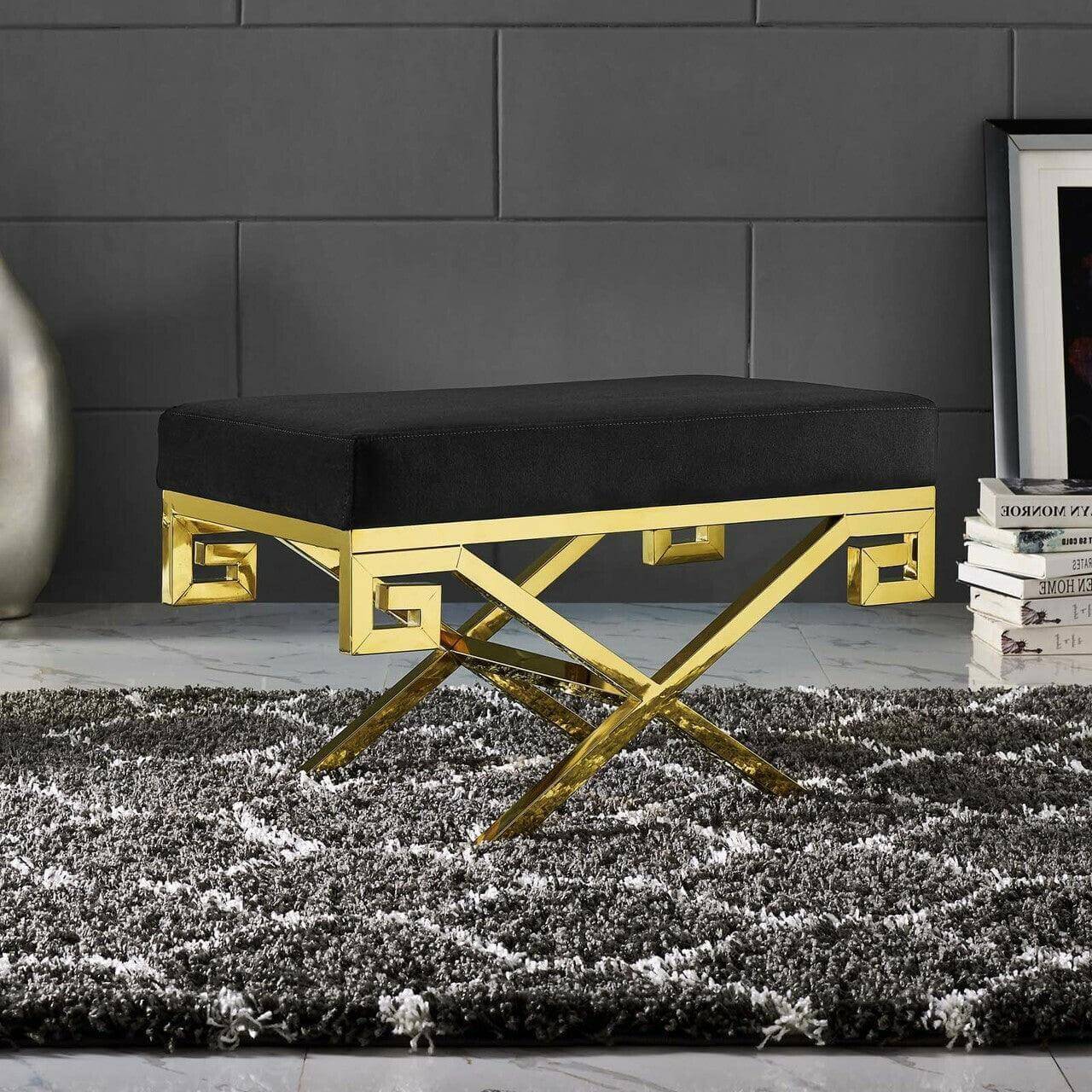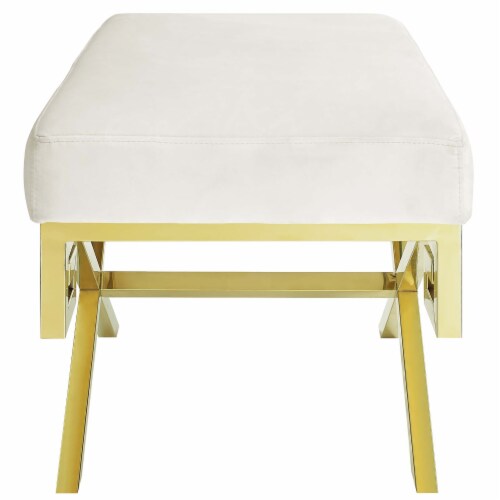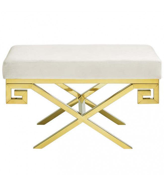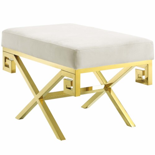 • Okuro Ivory Velvet Gold Ottoman Stool