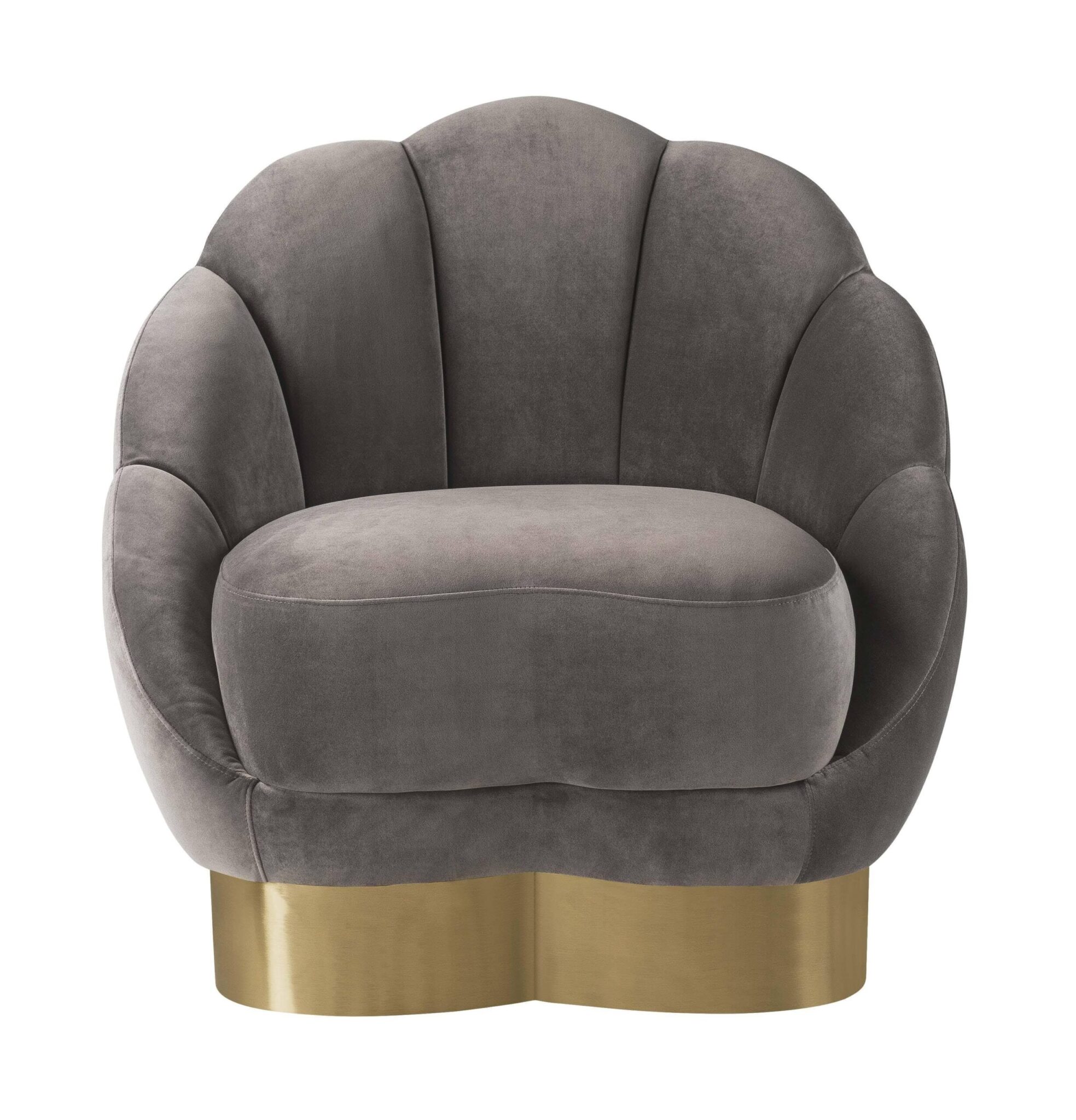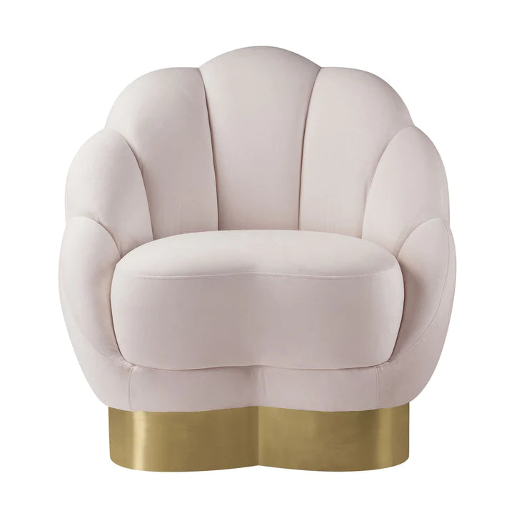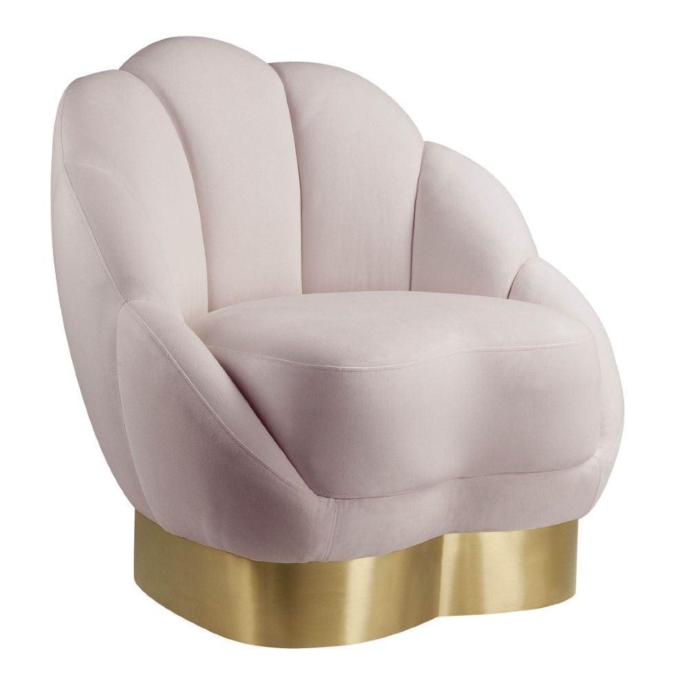 • Olympia Light Blush Velvet Scallop Brass Chair