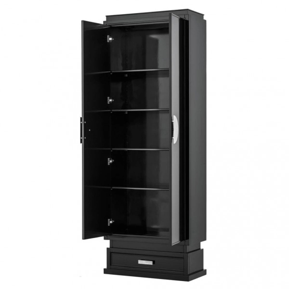 Opium luxury cabinet black solid ash wood with polished chrome handles – living room cabinet Baroque Art Nouveau Rococo shop fittings – luxury hotel & boutique furniture