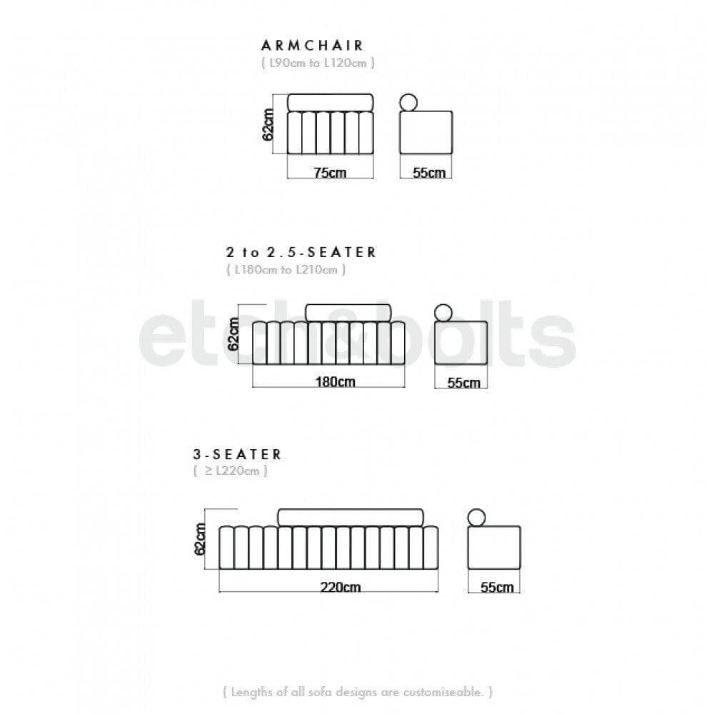 • Three Seater: W220cm x D55cm x H62cm