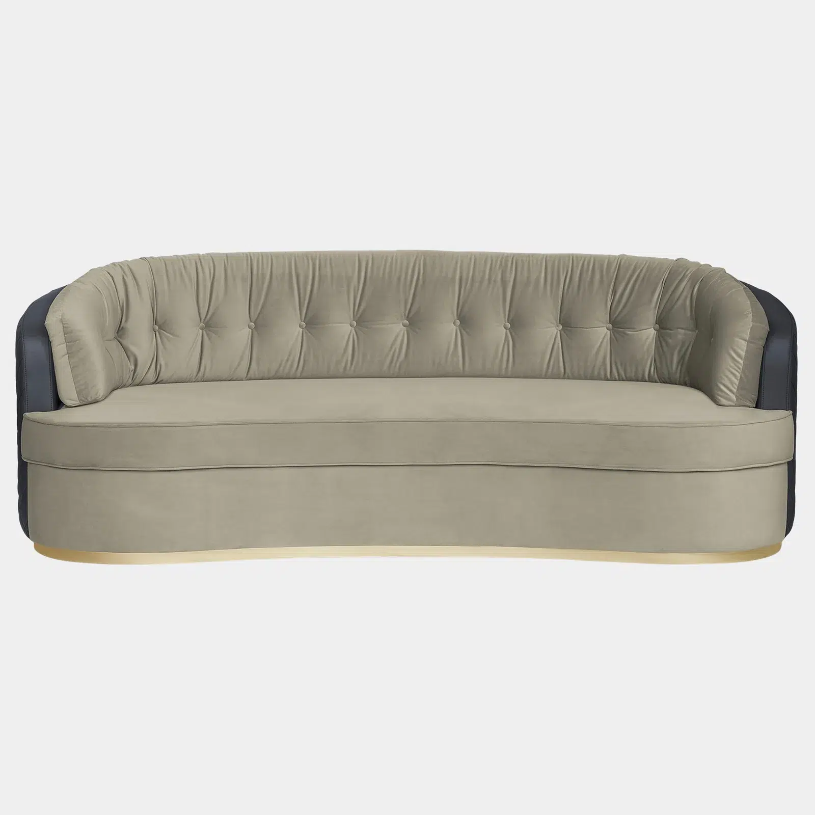 The Otto Brass, Leather & Velvet Stitched Sofa has a unique organic shape that provides impeccable comfort and style. This piece exudes a mid-century vibe and luxury design, as it’s made with the most precious materials and great design, produced with exceptional craftsmanship.