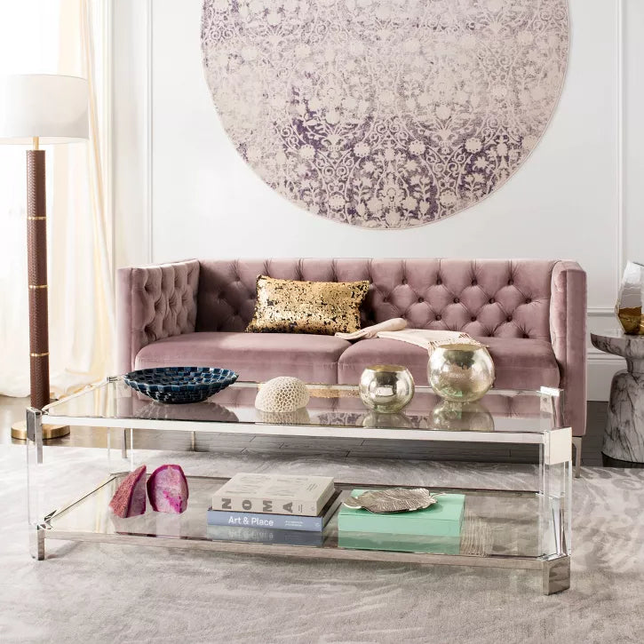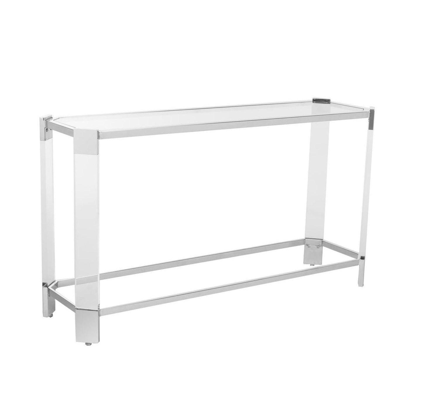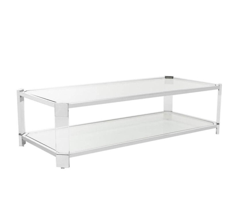 The Pascal Chrome Lucite coffee table is all about angles and the beauty of shiny chrome stainless steel, glass, and Lucite. You cannot go wrong choosing this winning combination! With dimensions that pair well with matching coffee table, large sectionals and sofas, the Pascal Rectangular Coffee Table makes an elegant centerpiece in any living room.