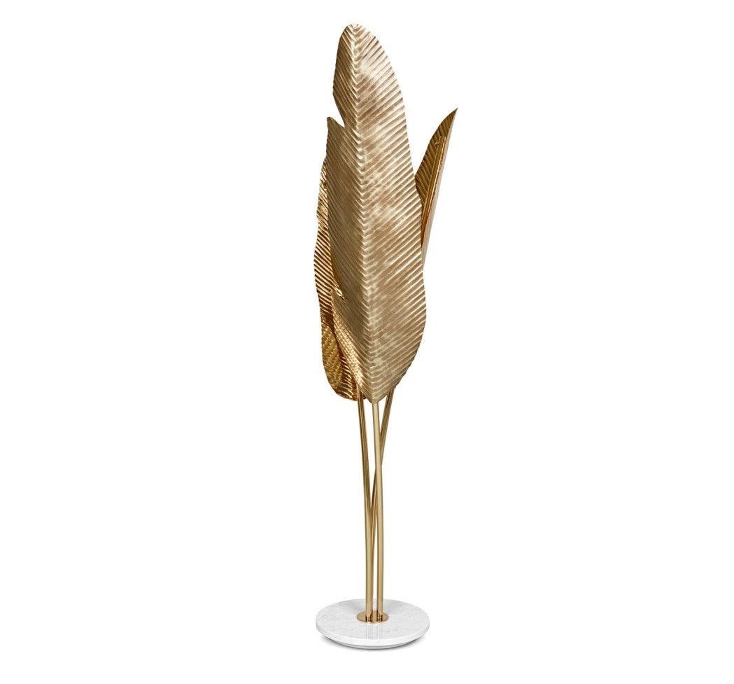 The jungles are awash in leafy profiles from which we took the inspiration for our Palmas Tropical Floor Lamp. The unruly forests sprouting these veined green wonders gave rise to ours made of handcrafted metal in a vintage nickel finish. We balanced the oversized leaves on a white grey marble base, and one design note that brings this floor lamp great finesse that matches the bright surface of the stems and leaves.