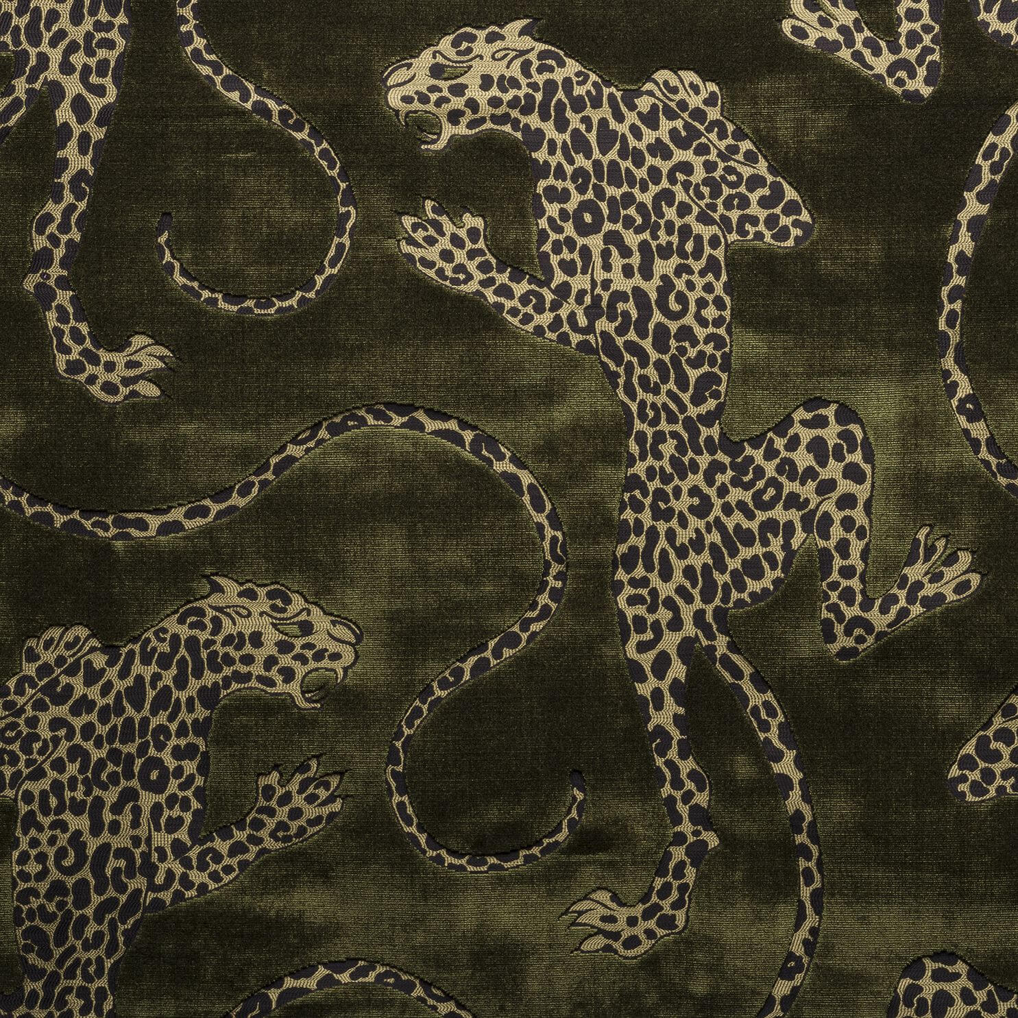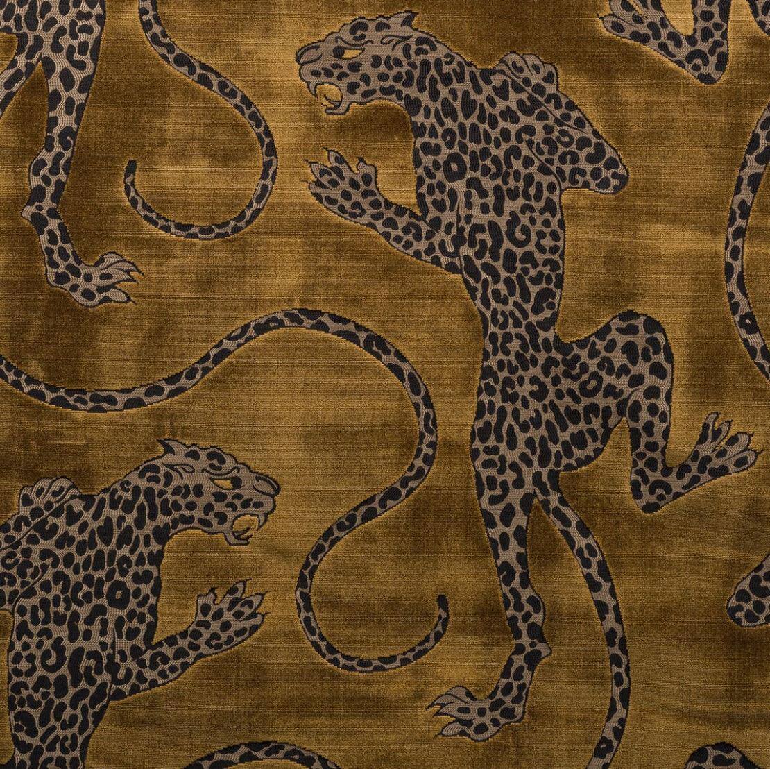 Our lithe leopard illustration Panthera was inspired by Elvis’s iconic stage costumes and jewellery, at once beautifully intricate and shamelessly bold in design. Woven in a decadent cut-pile velvet construction, our leopard motif is sunken into the cloth and detailed using a rhythmic binding, adding further depth and dimension to the pattern. Designed by Catherine Martin for Mokum.