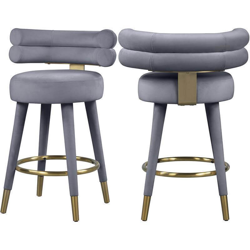 Parisian Grey Velvet Brass Counter Stool